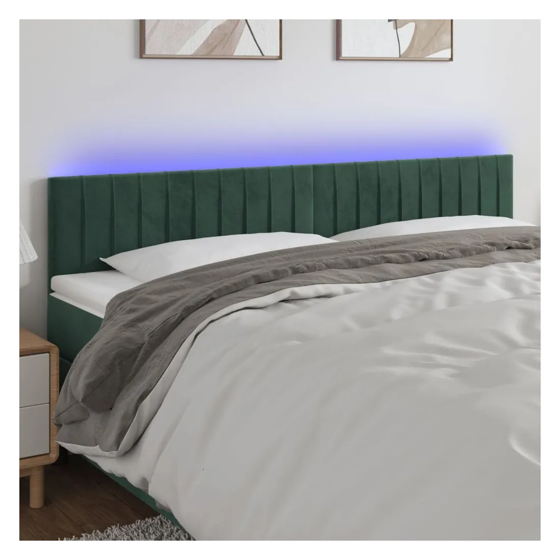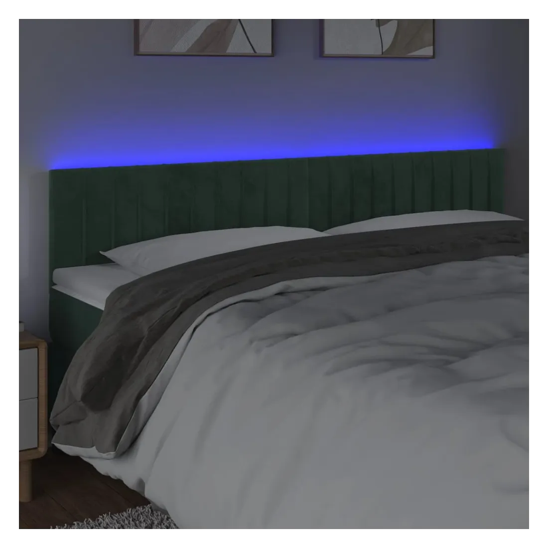 Cette tête de lit à LED classique, au design élégant, donne à votre cadre de lit une touche de modernité étonnante et convient parfaitement à toute chambre à coucher. Velours doux : le velours est un tissu doux et luxueux qui se reconnaît à son tas dense de fibres uniformément coupées qui ont une touche lisse. Le tissu en velours présente un toucher doux distinctif, ce qui le rend confortable au toucher. LED colorée : apportez de l'éclairage dans l'obscurité avec des lumières LED colorées ! Hauteur réglable : la tête de lit est réglable en hauteur selon vos préférences. Excellent soutien : la tête de lit vous offre un excellent soutien du dos lorsque vous êtes assis dans votre lit pour lire ou regarder la télévision. Bande à LED découpable : cette bande à LED flexible peut être ajustée