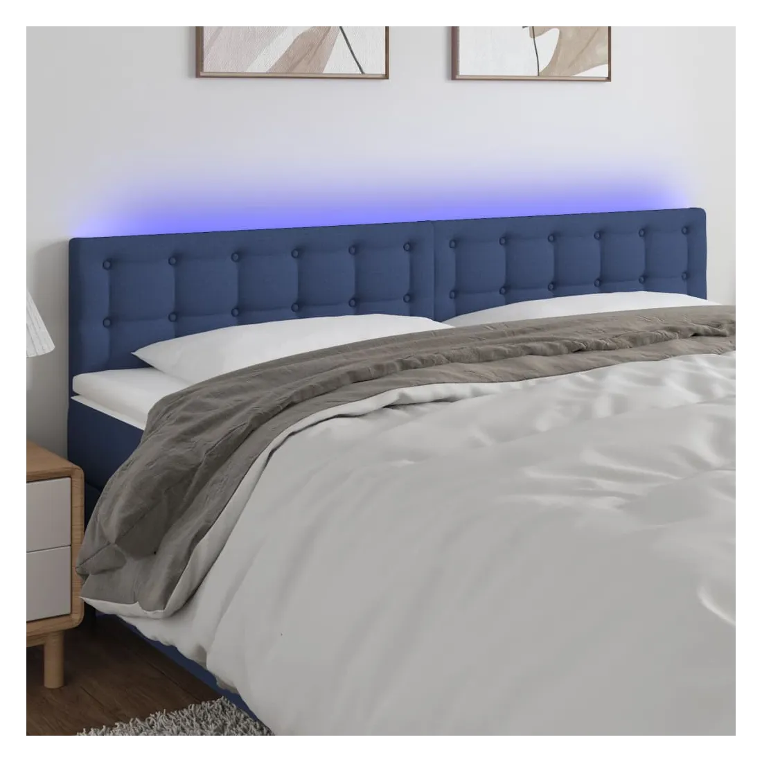 Cette tête de lit à LED classique, au design élégant, donne à votre cadre de lit une touche de modernité étonnante et convient parfaitement à toute chambre à coucher. Tissu durable : le tissu présente un aspect simple et épuré, et il est respirant et durable.LED colorée : apportez de l'éclairage dans l'obscurité avec des lumières LED colorées !Hauteur réglable : la tête de lit est réglable en hauteur selon vos préférences.Excellent soutien : la tête de lit vous offre un excellent soutien du dos lorsque vous êtes assis dans votre lit pour lire ou regarder la télévision.Bande à LED découpable : cette bande à LED flexible peut être ajustée en longueur. Le symbole des ciseaux indique où la bande peut être coupée en toute sécurité sans l'endommager. Remarque :Seule la partie avec un symbole de ciseaux peut être coupée et seule la partie avec l'USB continuera à fonctionner comme avant.Chaque produit est livré avec un manuel de montage dans la boîte pour un montage facile.Ce produit est doté d'un connecteur USB, mais la source d'alimentation certifiée de USB 5V n'est pas incluse.