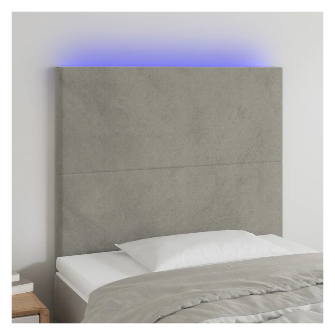 Cette tête de lit à LED classique, au design élégant, donne à votre cadre de lit une touche de modernité étonnante et convient parfaitement à toute chambre à coucher. Velours doux : le velours est un tissu doux et luxueux qui se reconnaît à son tas dense de fibres uniformément coupées qui ont une touche lisse. Le tissu en velours présente un toucher doux distinctif, ce qui le rend confortable au toucher.LED colorée : apportez de l'éclairage dans l'obscurité avec des lumières LED colorées !Hauteur réglable : la tête de lit est réglable en hauteur selon vos préférences.Excellent soutien : la tête de lit vous offre un excellent soutien du dos lorsque vous êtes assis dans votre lit pour lire ou regarder la télévision.Bande à LED découpable : cette bande à LED flexible peut être ajustée en longueur. Le symbole des ciseaux indique où la bande peut être coupée en toute sécurité sans l'endommager. Remarque :Seule la partie avec un symbole de ciseaux peut être coupée et seule la partie avec l'USB continuera à fonctionner comme avant.Chaque produit est livré avec un manuel de montage dans la boîte pour un montage facile.Ce produit est doté d'un connecteur USB, mais la source d'alimentation certifiée de USB 5V n'est pas incluse.