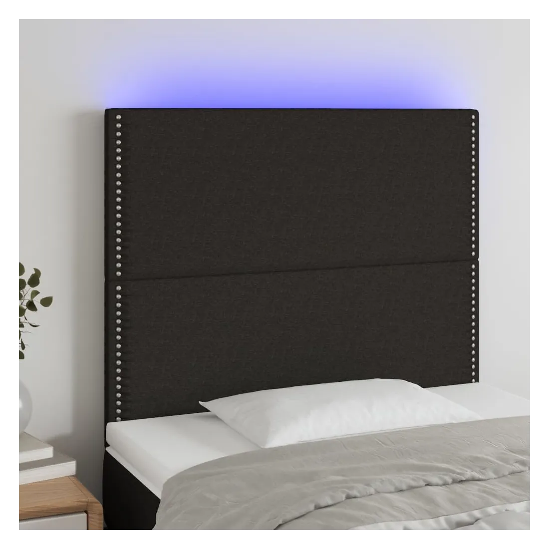 Cette tête de lit à LED classique, au design élégant, donne à votre cadre de lit une touche de modernité étonnante et convient parfaitement à toute chambre à coucher. Tissu durable : le tissu présente un aspect simple et épuré, et il est respirant et durable. LED colorée : apportez de l'éclairage dans l'obscurité avec des lumières LED colorées ! Hauteur réglable : la tête de lit est réglable en hauteur selon vos préférences. Excellent soutien : la tête de lit vous offre un excellent soutien du dos lorsque vous êtes assis dans votre lit pour lire ou regarder la télévision. Bande à LED découpable : cette bande à LED flexible peut être ajustée en longueur. Le symbole des ciseaux indique où la bande peut être coupée en toute sécurité sans l'endommager. Remarque : Seule la partie avec un sy
