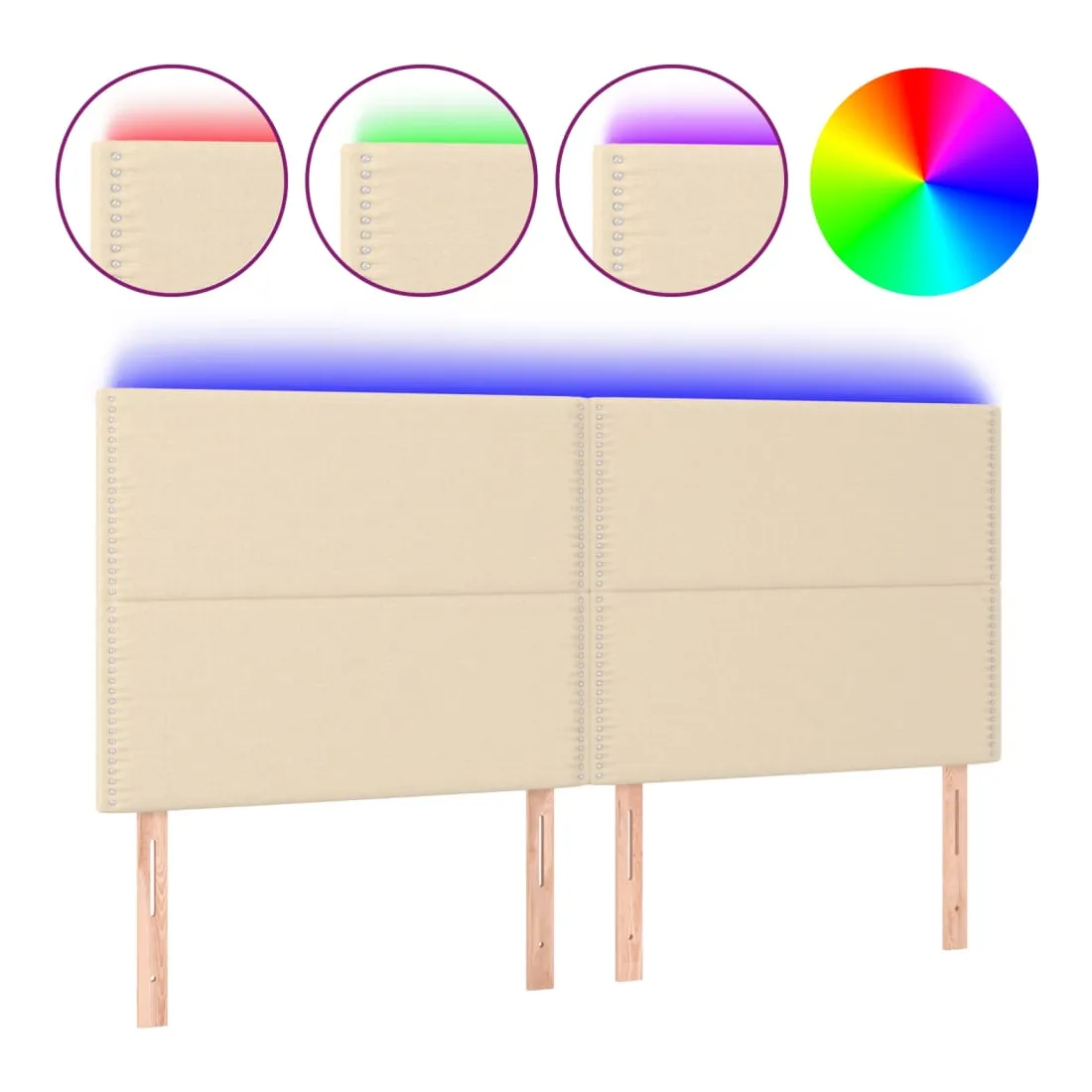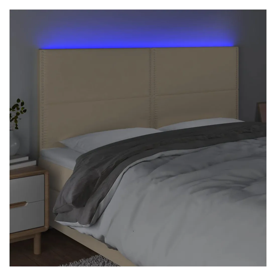 Cette tête de lit à LED classique, au design élégant, donne à votre cadre de lit une touche de modernité étonnante et convient parfaitement à toute chambre à coucher. Tissu durable : le tissu présente un aspect simple et épuré, et il est respirant et durable.LED colorée : apportez de l'éclairage dans l'obscurité avec des lumières LED colorées !Hauteur réglable : la tête de lit est réglable en hauteur selon vos préférences.Excellent soutien : la tête de lit vous offre un excellent soutien du dos lorsque vous êtes assis dans votre lit pour lire ou regarder la télévision.Bande à LED découpable : cette bande à LED flexible peut être ajustée en longueur. Le symbole des ciseaux indique où la bande peut être coupée en toute sécurité sans l'endommager. Remarque :Seule la partie avec un symbole de ciseaux peut être coupée et seule la partie avec l'USB continuera à fonctionner comme avant.Chaque produit est livré avec un manuel de montage dans la boîte pour un montage facile.Ce produit est doté d'un connecteur USB, mais la source d'alimentation certifiée de USB 5V n'est pas incluse.