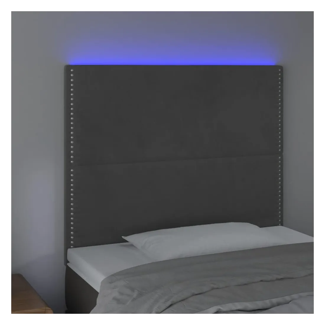 Cette tête de lit à LED classique, au design élégant, donne à votre cadre de lit une touche de modernité étonnante et convient parfaitement à toute chambre à coucher. Velours doux : le velours est un tissu doux et luxueux qui se reconnaît à son tas dense de fibres uniformément coupées qui ont une touche lisse. Le tissu en velours présente un toucher doux distinctif, ce qui le rend confortable au toucher.LED colorée : apportez de l'éclairage dans l'obscurité avec des lumières LED colorées !Hauteur réglable : la tête de lit est réglable en hauteur selon vos préférences.Excellent soutien : la tête de lit vous offre un excellent soutien du dos lorsque vous êtes assis dans votre lit pour lire ou regarder la télévision.Bande à LED découpable : cette bande à LED flexible peut être ajustée en longueur. Le symbole des ciseaux indique où la bande peut être coupée en toute sécurité sans l'endommager. Remarque :Seule la partie avec un symbole de ciseaux peut être coupée et seule la partie avec l'USB continuera à fonctionner comme avant.Chaque produit est livré avec un manuel de montage dans la boîte pour un montage facile.Ce produit est doté d'un connecteur USB, mais la source d'alimentation certifiée de USB 5V n'est pas incluse.