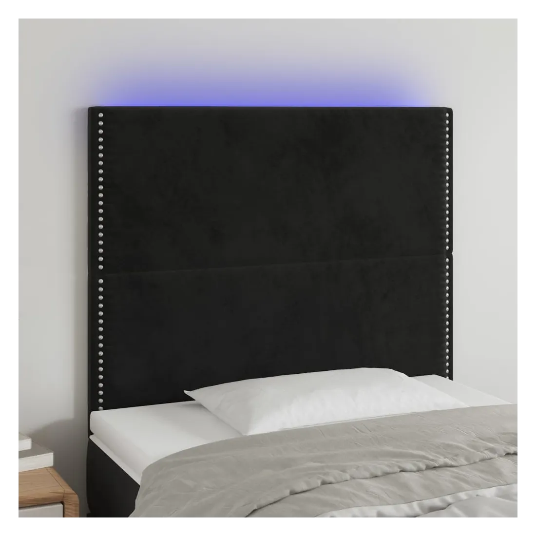 Cette tête de lit à LED classique, au design élégant, donne à votre cadre de lit une touche de modernité étonnante et convient parfaitement à toute chambre à coucher. Velours doux : le velours est un tissu doux et luxueux qui se reconnaît à son tas dense de fibres uniformément coupées qui ont une touche lisse. Le tissu en velours présente un toucher doux distinctif, ce qui le rend confortable au toucher.LED colorée : apportez de l'éclairage dans l'obscurité avec des lumières LED colorées !Hauteur réglable : la tête de lit est réglable en hauteur selon vos préférences.Excellent soutien : la tête de lit vous offre un excellent soutien du dos lorsque vous êtes assis dans votre lit pour lire ou regarder la télévision.Bande à LED découpable : cette bande à LED flexible peut être ajustée en longueur. Le symbole des ciseaux indique où la bande peut être coupée en toute sécurité sans l'endommager. Remarque :Seule la partie avec un symbole de ciseaux peut être coupée et seule la partie avec l'USB continuera à fonctionner comme avant.Chaque produit est livré avec un manuel de montage dans la boîte pour un montage facile.Ce produit est doté d'un connecteur USB, mais la source d'alimentation certifiée de USB 5V n'est pas incluse.
