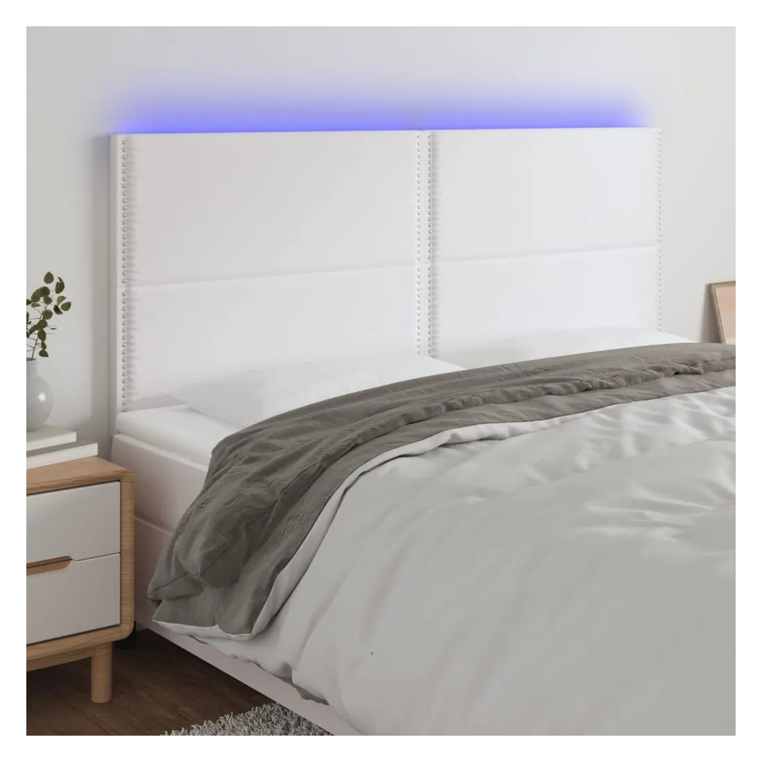 vidaXLCette tête de lit à LED classique, au design élégant, donne à votre cadre de lit une touche de modernité étonnante et convient parfaitement à toute chambre à coucher. Similicuir durable : le similicuir de qualité supérieure est un matériau très durable. Il est résistant aux taches, ce qui le rend facile à nettoyer avec un chiffon humide. La surface lisse donne également un aspect luxueux et la beauté du cuir véritable.LED colorée : apportez de l'éclairage dans l'obscurité avec des lumières LED colorées !Hauteur réglable : la tête de lit est réglable en hauteur selon vos préférences.Excellent soutien : la tête de lit vous offre un excellent soutien du dos lorsque vous êtes assis dans votre lit pour lire ou regarder la télévision.Bande à LED découpable : cette bande à LED flexible peut être ajustée en longueur. Le symbole des ciseaux indique où la bande peut être coupée en toute sécurité sans l'endommager. Remarque :Seule la partie avec un symbole de ciseaux peut être coupée et seule la partie avec l'USB continuera à fonctionner comme avant.Chaque produit est livré avec un manuel de montage dans la boîte pour un montage facile.Ce produit est doté d'un connecteur USB, mais la source d'alimentation certifiée de USB 5V n'est pas incluse.