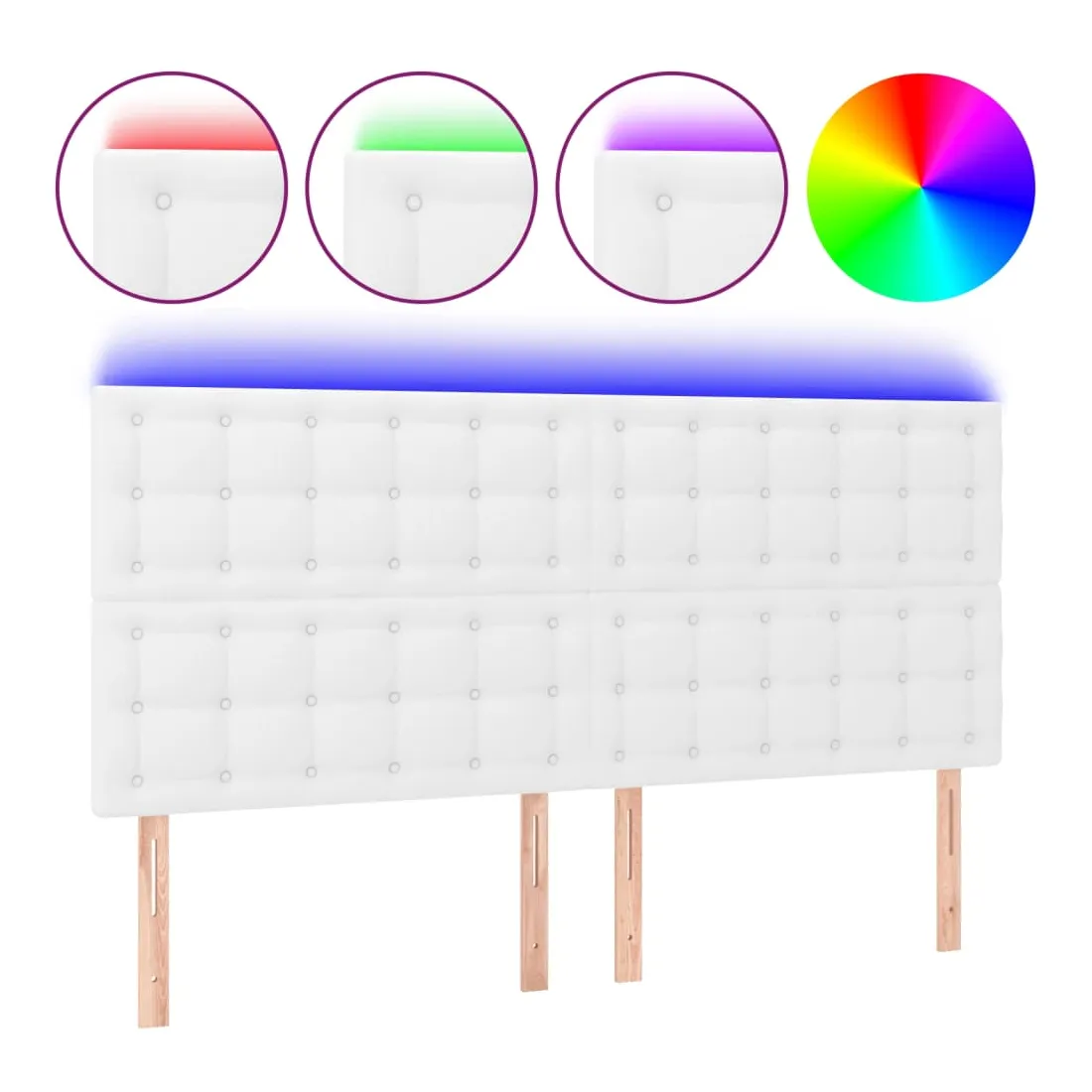Cette tête de lit à LED classique, au design élégant, donne à votre cadre de lit une touche de modernité étonnante et convient parfaitement à toute chambre à coucher. Similicuir durable : le similicuir de qualité supérieure est un matériau très durable. Il est résistant aux taches, ce qui le rend facile à nettoyer avec un chiffon humide. La surface lisse donne également un aspect luxueux et la beauté du cuir véritable. LED colorée : apportez de l'éclairage dans l'obscurité avec des lumières LED colorées ! Hauteur réglable : la tête de lit est réglable en hauteur selon vos préférences. Excellent soutien : la tête de lit vous offre un excellent soutien du dos lorsque vous êtes assis dans votre lit pour lire ou regarder la télévision. Bande à LED découpable : cette bande à LED flexible pe