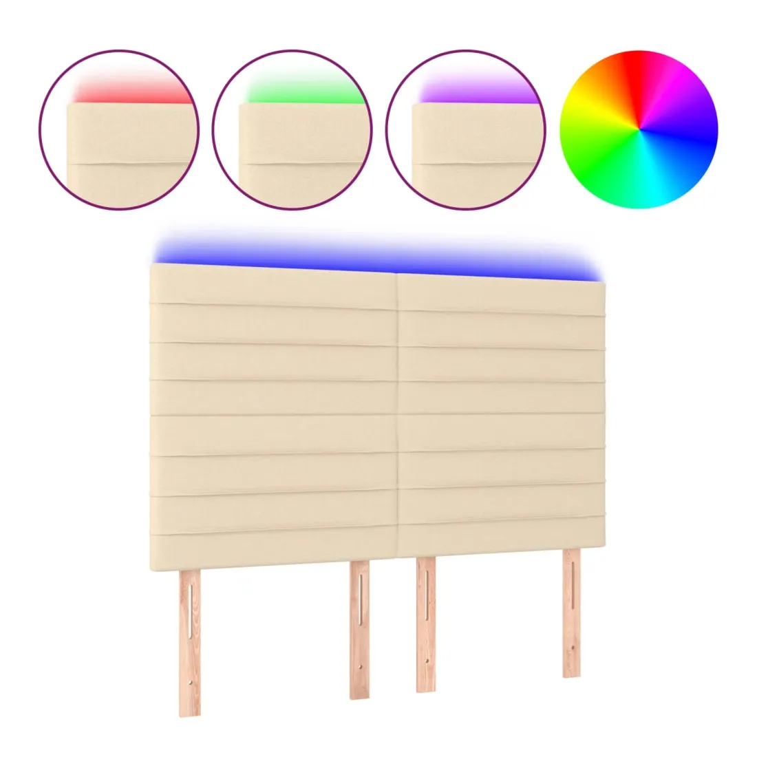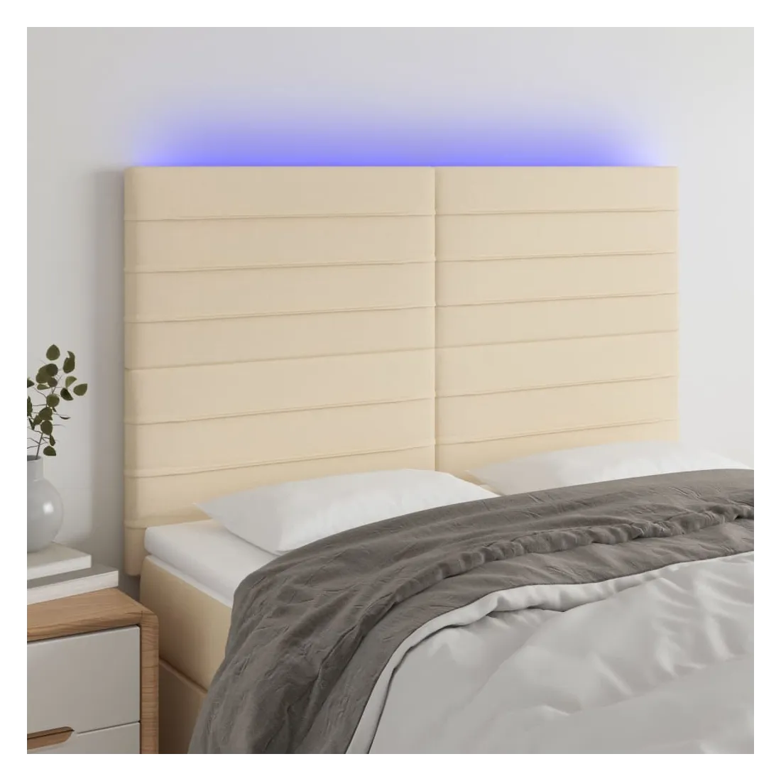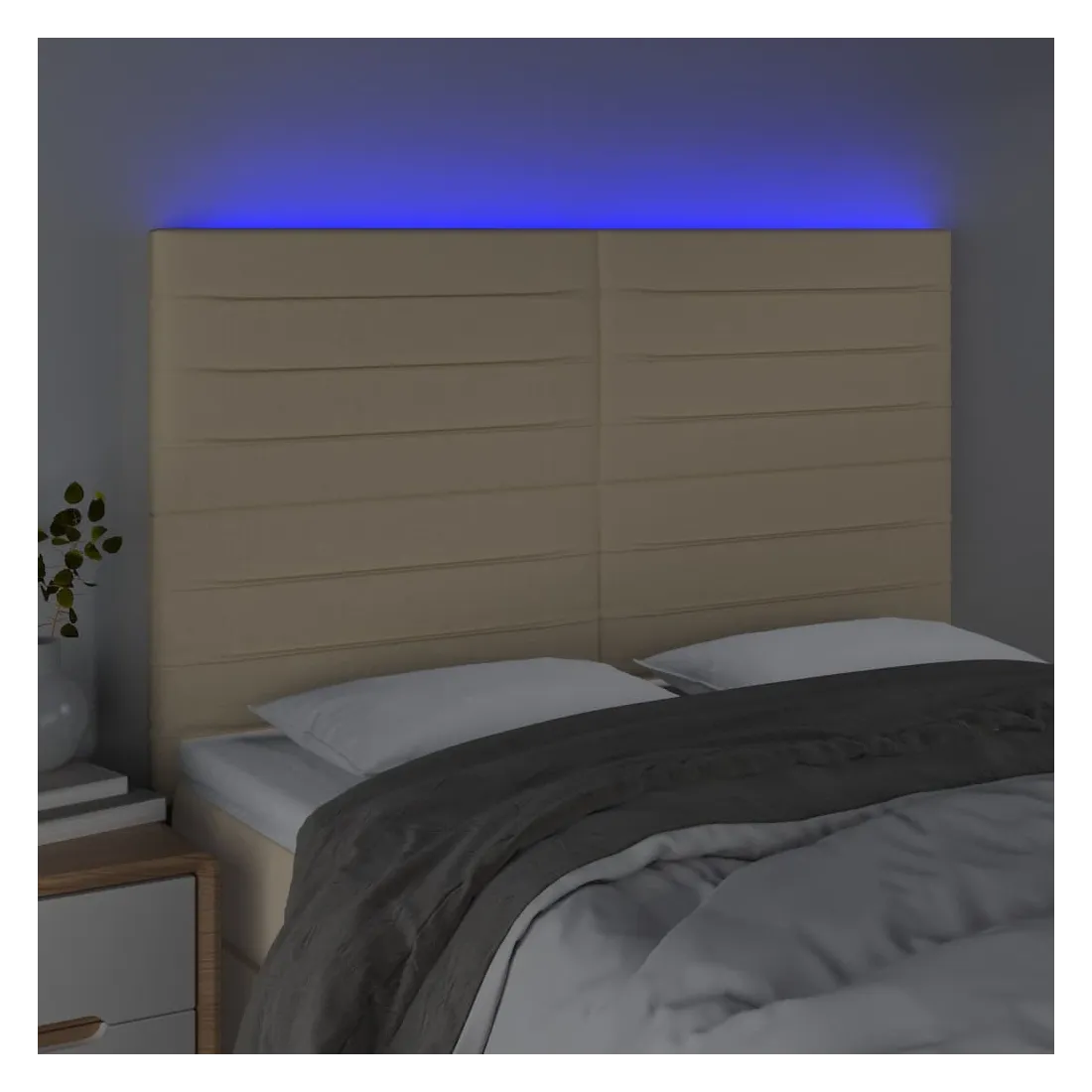 Cette tête de lit à LED classique, au design élégant, donne à votre cadre de lit une touche de modernité étonnante et convient parfaitement à toute chambre à coucher. Tissu durable : le tissu présente un aspect simple et épuré, et il est respirant et durable. LED colorée : apportez de l'éclairage dans l'obscurité avec des lumières LED colorées ! Hauteur réglable : la tête de lit est réglable en hauteur selon vos préférences. Excellent soutien : la tête de lit vous offre un excellent soutien du dos lorsque vous êtes assis dans votre lit pour lire ou regarder la télévision. Bande à LED découpable : cette bande à LED flexible peut être ajustée en longueur. Le symbole des ciseaux indique où la bande peut être coupée en toute sécurité sans l'endommager. Remarque : Seule la partie avec un sy