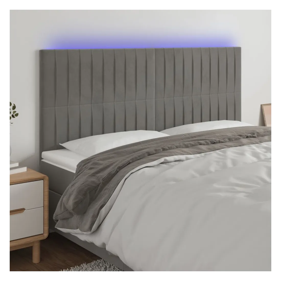 Tête de lit à LED Gris clair 200x5x118/128 cm Velours