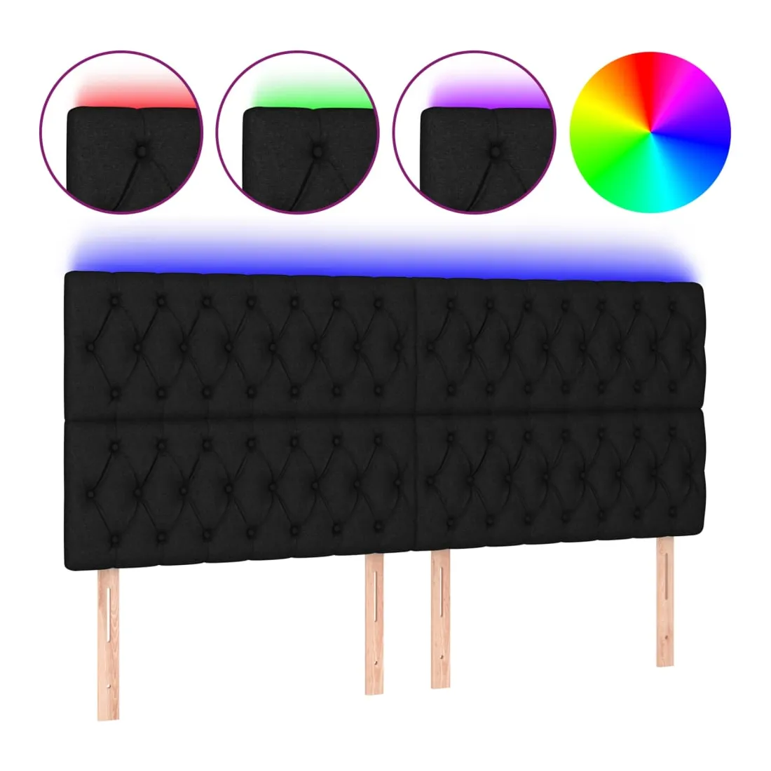 Tête de lit à LED Noir 200x7x118/128 cm Tissu