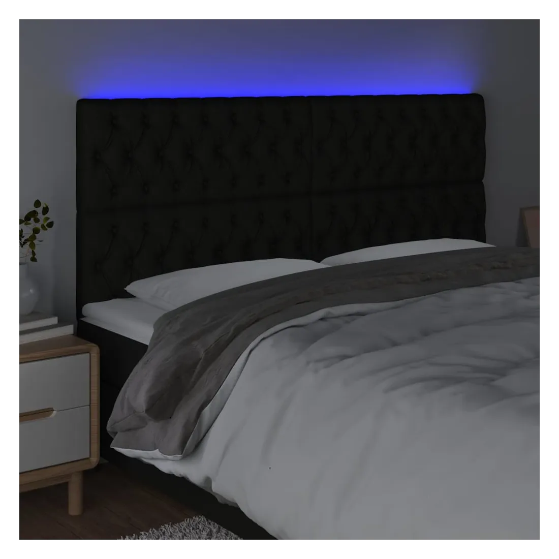 Cette tête de lit à LED classique, au design élégant, donne à votre cadre de lit une touche de modernité étonnante et convient parfaitement à toute chambre à coucher. Tissu durable : le tissu présente un aspect simple et épuré, et il est respirant et durable.LED colorée : apportez de l'éclairage dans l'obscurité avec des lumières LED colorées !Hauteur réglable : la tête de lit est réglable en hauteur selon vos préférences.Excellent soutien : la tête de lit vous offre un excellent soutien du dos lorsque vous êtes assis dans votre lit pour lire ou regarder la télévision.Bande à LED découpable : cette bande à LED flexible peut être ajustée en longueur. Le symbole des ciseaux indique où la bande peut être coupée en toute sécurité sans l'endommager. Remarque :Seule la partie avec un symbole de ciseaux peut être coupée et seule la partie avec l'USB continuera à fonctionner comme avant.Chaque produit est livré avec un manuel de montage dans la boîte pour un montage facile.Ce produit est doté d'un connecteur USB, mais la source d'alimentation certifiée de USB 5V n'est pas incluse.