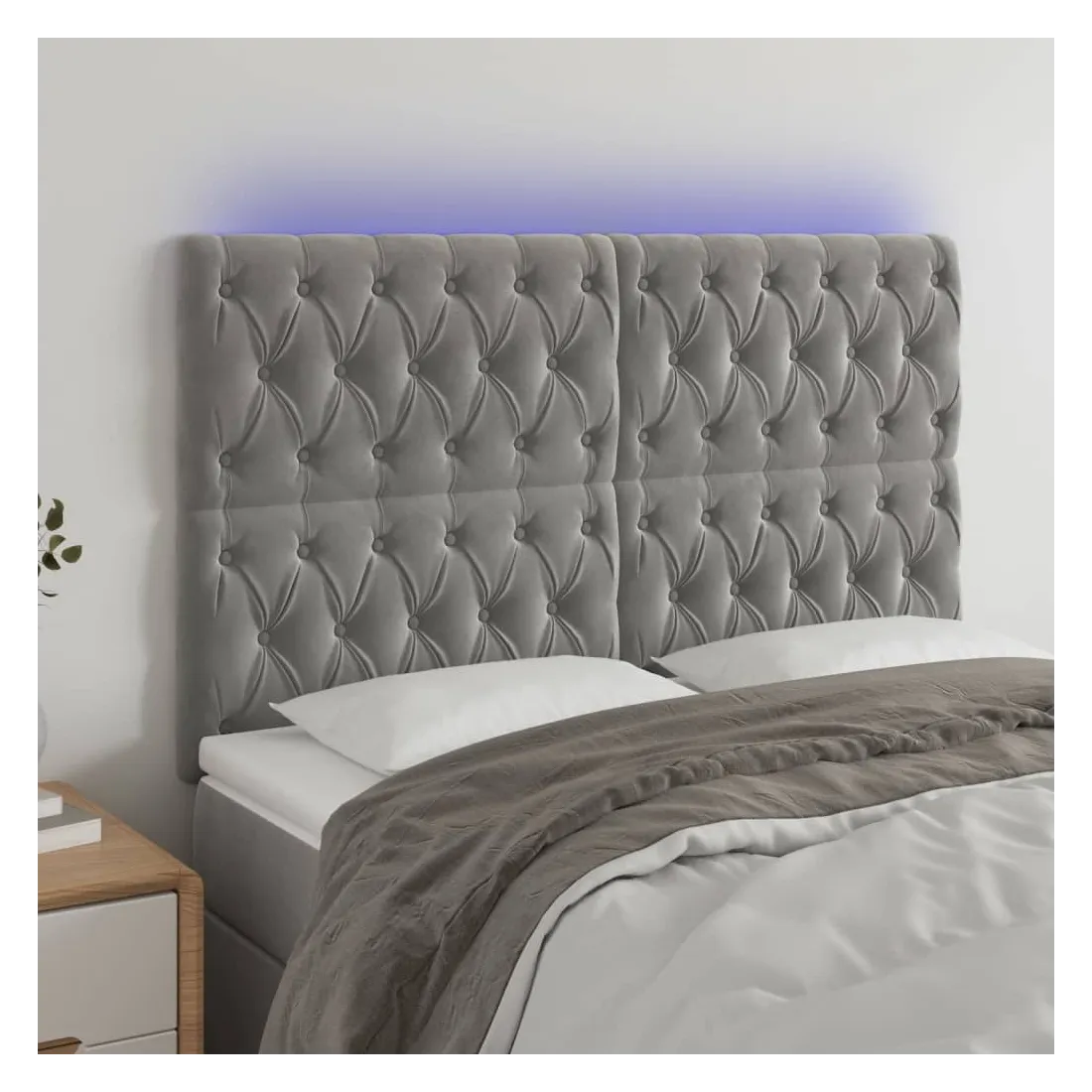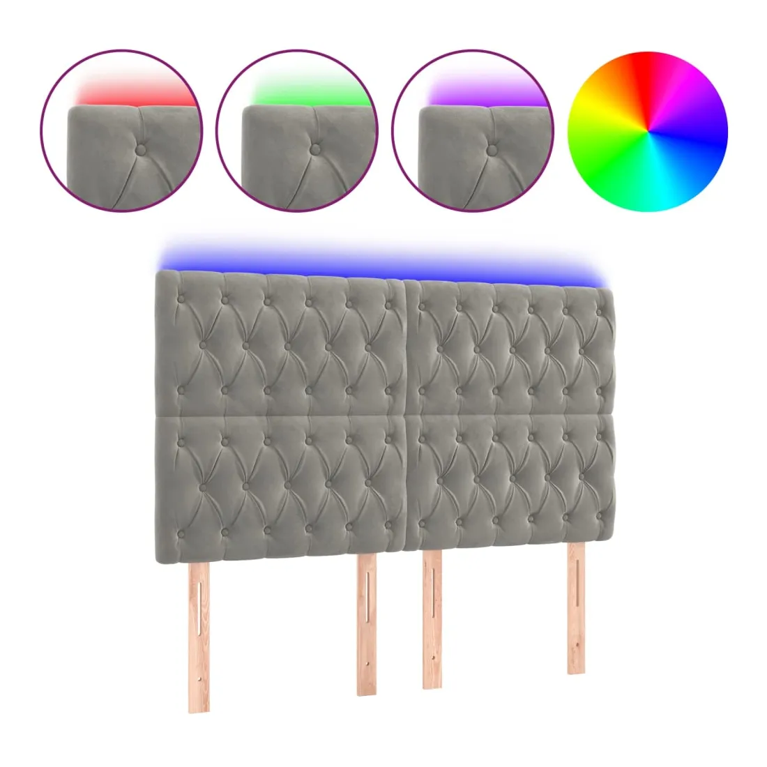 Tête de lit à LED Gris clair 144x7x118/128 cm Velours