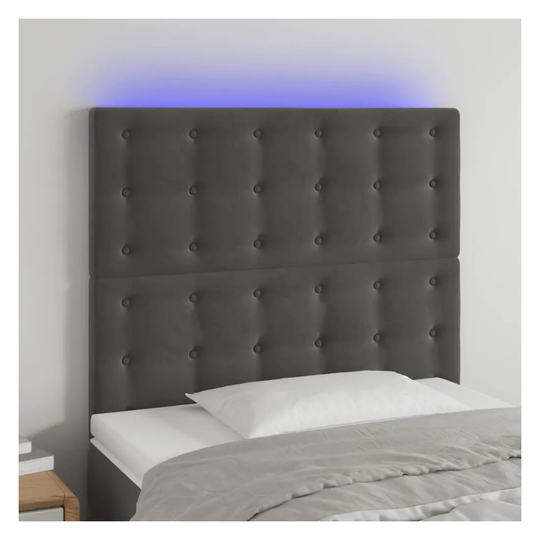 Tête de lit à LED Gris foncé 100x5x118/128 cm Velours