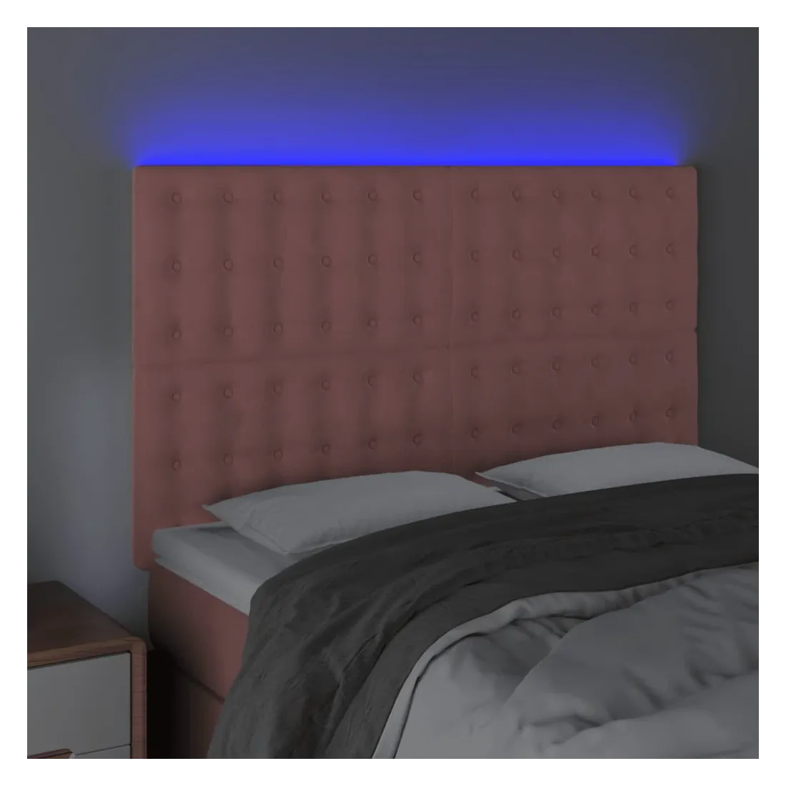 Cette tête de lit à LED classique, au design élégant, donne à votre cadre de lit une touche de modernité étonnante et convient parfaitement à toute chambre à coucher. Velours doux : le velours est un tissu doux et luxueux qui se reconnaît à son tas dense de fibres uniformément coupées qui ont une touche lisse. Le tissu en velours présente un toucher doux distinctif, ce qui le rend confortable au toucher.LED colorée : apportez de l'éclairage dans l'obscurité avec des lumières LED colorées !Hauteur réglable : la tête de lit est réglable en hauteur selon vos préférences.Excellent soutien : la tête de lit vous offre un excellent soutien du dos lorsque vous êtes assis dans votre lit pour lire ou regarder la télévision.Bande à LED découpable : cette bande à LED flexible peut être ajustée en longueur. Le symbole des ciseaux indique où la bande peut être coupée en toute sécurité sans l'endommager. Remarque :Seule la partie avec un symbole de ciseaux peut être coupée et seule la partie avec l'USB continuera à fonctionner comme avant.Chaque produit est livré avec un manuel de montage dans la boîte pour un montage facile.Ce produit est doté d'un connecteur USB, mais la source d'alimentation certifiée de USB 5V n'est pas incluse.