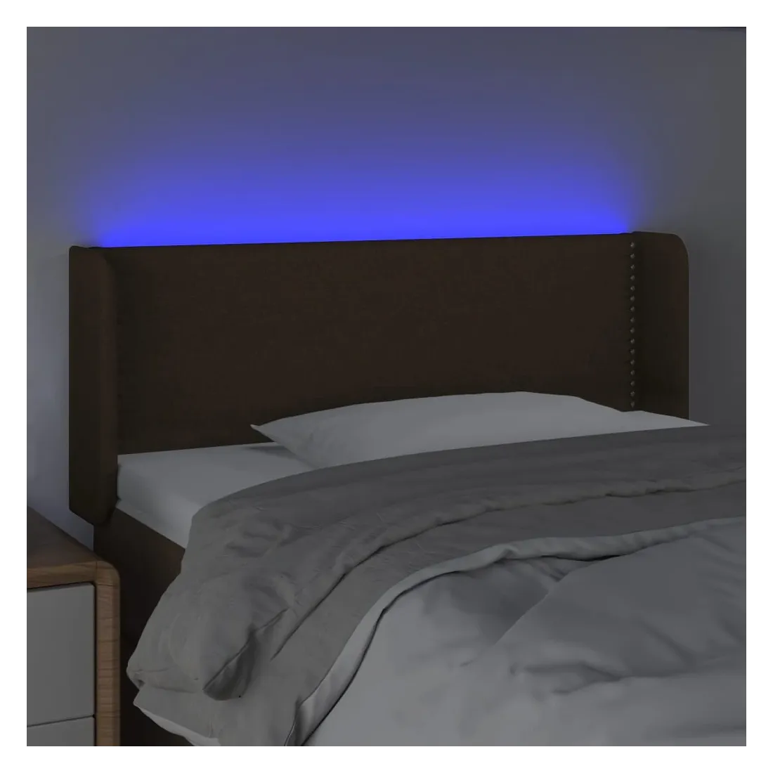 Cette tête de lit à LED classique, au design élégant, donne à votre cadre de lit une touche de modernité étonnante et convient parfaitement à toute chambre à coucher. Tissu durable : le tissu présente un aspect simple et épuré, et il est respirant et durable.LED colorée : apportez de l'éclairage dans l'obscurité avec des lumières LED colorées !Hauteur réglable : la tête de lit est réglable en hauteur selon vos préférences.Excellent soutien : la tête de lit vous offre un excellent soutien du dos lorsque vous êtes assis dans votre lit pour lire ou regarder la télévision.Bande à LED découpable : cette bande à LED flexible peut être ajustée en longueur. Le symbole des ciseaux indique où la bande peut être coupée en toute sécurité sans l'endommager. Remarque :Seule la partie avec un symbole de ciseaux peut être coupée et seule la partie avec l'USB continuera à fonctionner comme avant.Chaque produit est livré avec un manuel de montage dans la boîte pour un montage facile.Ce produit est doté d'un connecteur USB, mais la source d'alimentation certifiée de USB 5V n'est pas incluse.