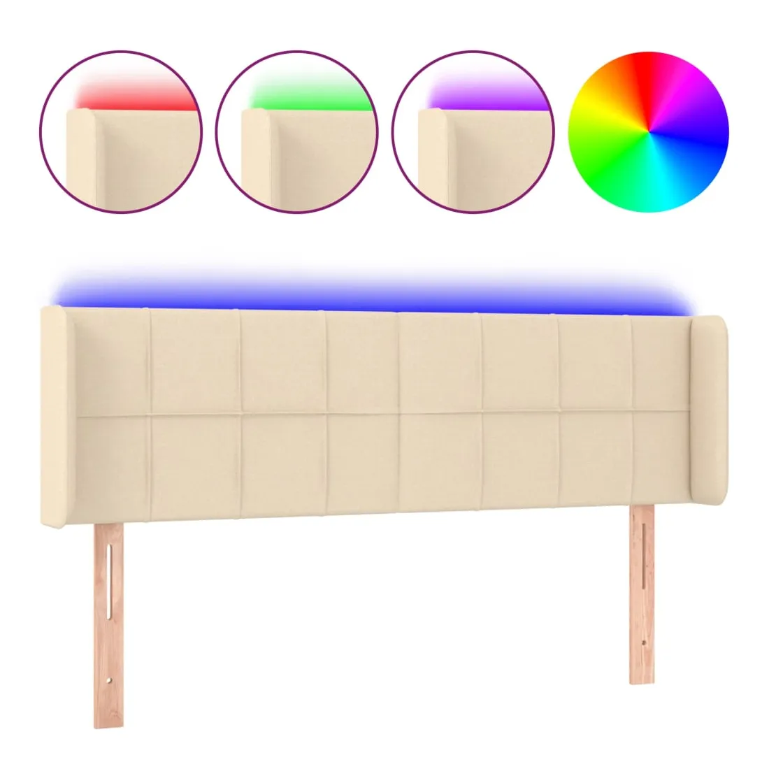 Cette tête de lit à LED classique, au design élégant, donne à votre cadre de lit une touche de modernité étonnante et convient parfaitement à toute chambre à coucher. Tissu durable : le tissu présente un aspect simple et épuré, et il est respirant et durable. LED colorée : apportez de l'éclairage dans l'obscurité avec des lumières LED colorées ! Hauteur réglable : la tête de lit est réglable en hauteur selon vos préférences. Excellent soutien : la tête de lit vous offre un excellent soutien du dos lorsque vous êtes assis dans votre lit pour lire ou regarder la télévision. Bande à LED découpable : cette bande à LED flexible peut être ajustée en longueur. Le symbole des ciseaux indique où la bande peut être coupée en toute sécurité sans l'endommager. Remarque : Seule la partie avec un sy