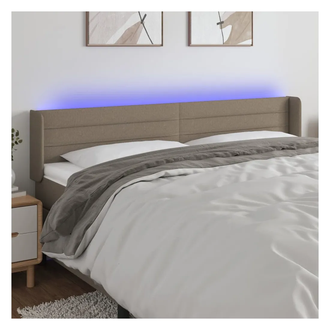 Cette tête de lit à LED classique, au design élégant, donne à votre cadre de lit une touche de modernité étonnante et convient parfaitement à toute chambre à coucher. Tissu durable : le tissu présente un aspect simple et épuré, et il est respirant et durable.LED colorée : apportez de l'éclairage dans l'obscurité avec des lumières LED colorées !Hauteur réglable : la tête de lit est réglable en hauteur selon vos préférences.Excellent soutien : la tête de lit vous offre un excellent soutien du dos lorsque vous êtes assis dans votre lit pour lire ou regarder la télévision.Bande à LED découpable : cette bande à LED flexible peut être ajustée en longueur. Le symbole des ciseaux indique où la bande peut être coupée en toute sécurité sans l'endommager. Remarque :Seule la partie avec un symbole de ciseaux peut être coupée et seule la partie avec l'USB continuera à fonctionner comme avant.Chaque produit est livré avec un manuel de montage dans la boîte pour un montage facile.Ce produit est doté d'un connecteur USB, mais la source d'alimentation certifiée de USB 5V n'est pas incluse.