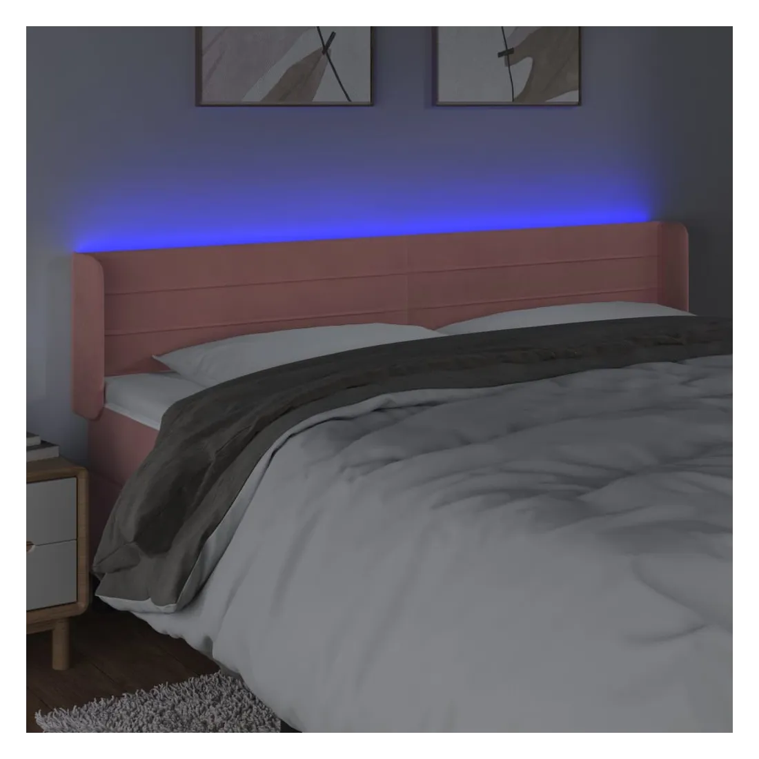 Cette tête de lit à LED classique, au design élégant, donne à votre cadre de lit une touche de modernité étonnante et convient parfaitement à toute chambre à coucher. Velours doux : le velours est un tissu doux et luxueux qui se reconnaît à son tas dense de fibres uniformément coupées qui ont une touche lisse. Le tissu en velours présente un toucher doux distinctif, ce qui le rend confortable au toucher.LED colorée : apportez de l'éclairage dans l'obscurité avec des lumières LED colorées !Hauteur réglable : la tête de lit est réglable en hauteur selon vos préférences.Excellent soutien : la tête de lit vous offre un excellent soutien du dos lorsque vous êtes assis dans votre lit pour lire ou regarder la télévision.Bande à LED découpable : cette bande à LED flexible peut être ajustée en longueur. Le symbole des ciseaux indique où la bande peut être coupée en toute sécurité sans l'endommager. Remarque :Seule la partie avec un symbole de ciseaux peut être coupée et seule la partie avec l'USB continuera à fonctionner comme avant.Chaque produit est livré avec un manuel de montage dans la boîte pour un montage facile.Ce produit est doté d'un connecteur USB, mais la source d'alimentation certifiée de USB 5V n'est pas incluse.
