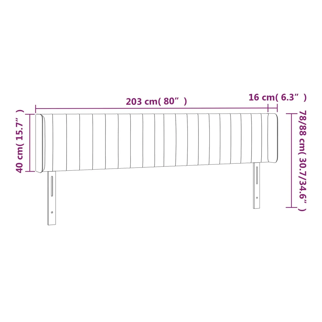 203 x 16 x 78/88 cm
