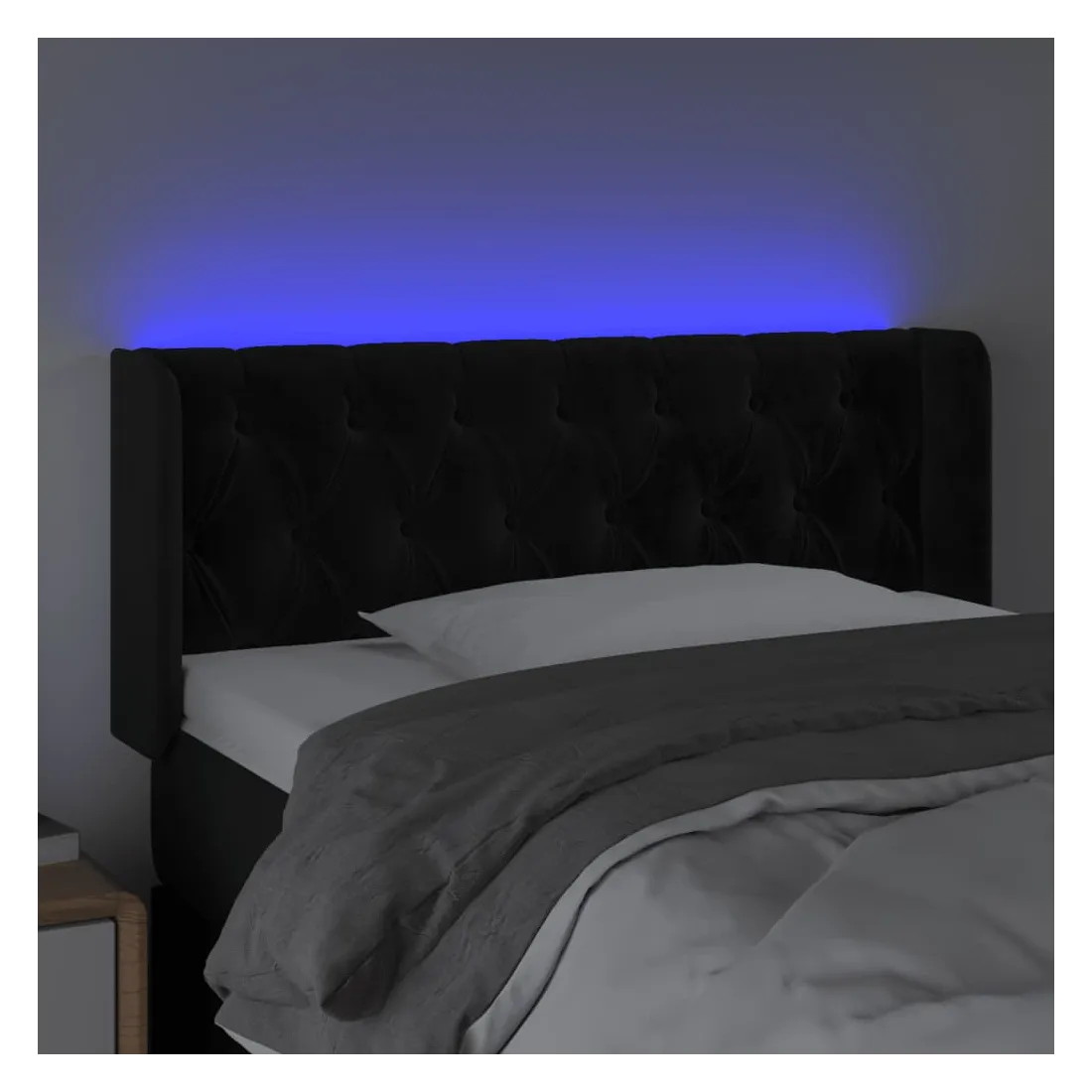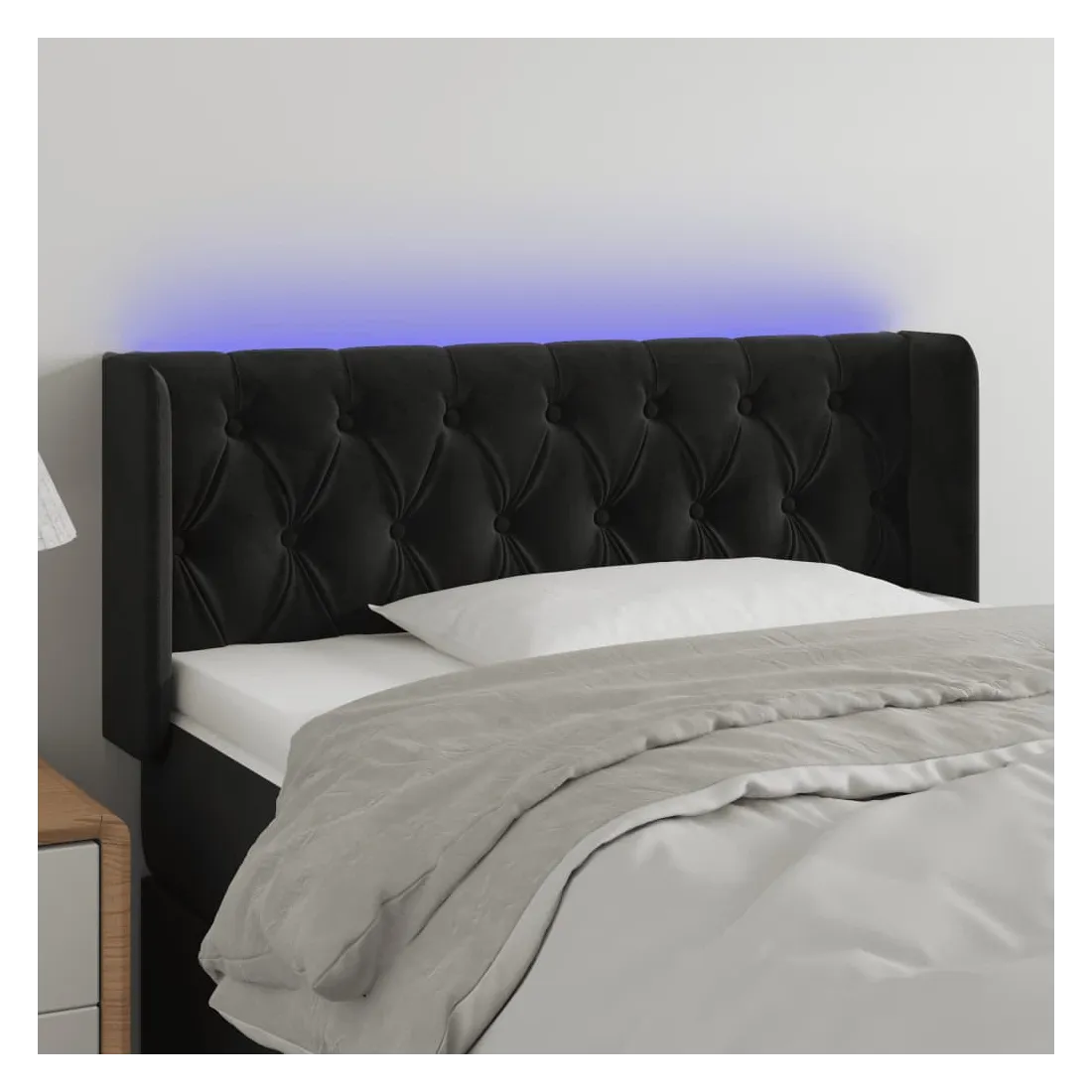 Cette tête de lit à LED classique, au design élégant, donne à votre cadre de lit une touche de modernité étonnante et convient parfaitement à toute chambre à coucher. Velours doux : le velours est un tissu doux et luxueux qui se reconnaît à son tas dense de fibres uniformément coupées qui ont une touche lisse. Le tissu en velours présente un toucher doux distinctif, ce qui le rend confortable au toucher.LED colorée : apportez de l'éclairage dans l'obscurité avec des lumières LED colorées !Hauteur réglable : la tête de lit est réglable en hauteur selon vos préférences.Excellent soutien : la tête de lit vous offre un excellent soutien du dos lorsque vous êtes assis dans votre lit pour lire ou regarder la télévision.Bande à LED découpable : cette bande à LED flexible peut être ajustée en longueur. Le symbole des ciseaux indique où la bande peut être coupée en toute sécurité sans l'endommager. Remarque :Seule la partie avec un symbole de ciseaux peut être coupée et seule la partie avec l'USB continuera à fonctionner comme avant.Chaque produit est livré avec un manuel de montage dans la boîte pour un montage facile.Ce produit est doté d'un connecteur USB, mais la source d'alimentation certifiée de USB 5V n'est pas incluse.