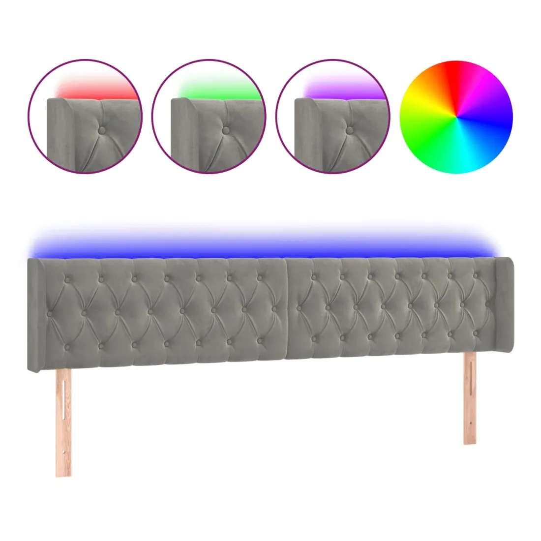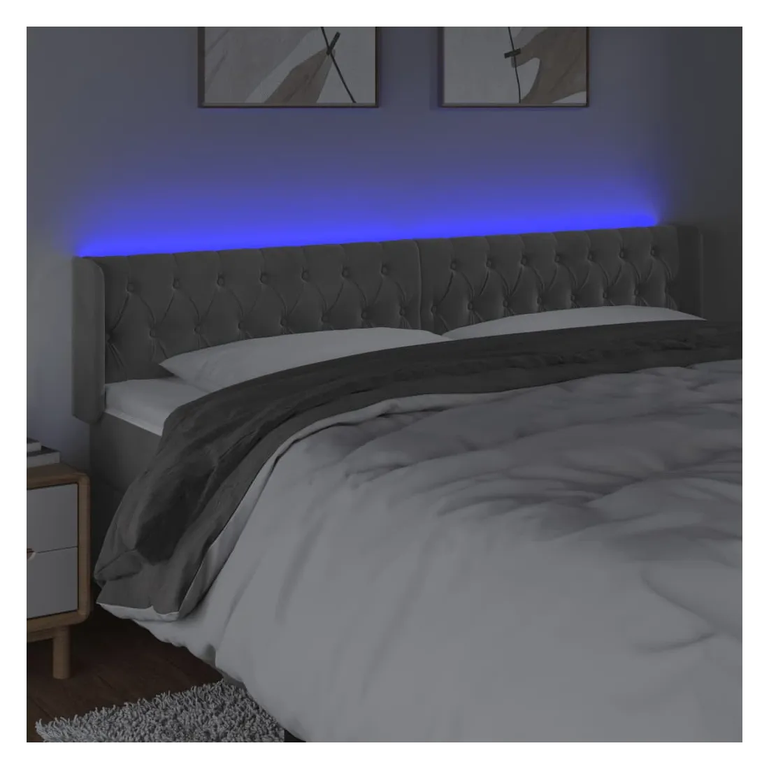 Cette tête de lit à LED classique, au design élégant, donne à votre cadre de lit une touche de modernité étonnante et convient parfaitement à toute chambre à coucher. Velours doux : le velours est un tissu doux et luxueux qui se reconnaît à son tas dense de fibres uniformément coupées qui ont une touche lisse. Le tissu en velours présente un toucher doux distinctif, ce qui le rend confortable au toucher.LED colorée : apportez de l'éclairage dans l'obscurité avec des lumières LED colorées !Hauteur réglable : la tête de lit est réglable en hauteur selon vos préférences.Excellent soutien : la tête de lit vous offre un excellent soutien du dos lorsque vous êtes assis dans votre lit pour lire ou regarder la télévision.Bande à LED découpable : cette bande à LED flexible peut être ajustée en longueur. Le symbole des ciseaux indique où la bande peut être coupée en toute sécurité sans l'endommager. Remarque :Seule la partie avec un symbole de ciseaux peut être coupée et seule la partie avec l'USB continuera à fonctionner comme avant.Chaque produit est livré avec un manuel de montage dans la boîte pour un montage facile.Ce produit est doté d'un connecteur USB, mais la source d'alimentation certifiée de USB 5V n'est pas incluse.