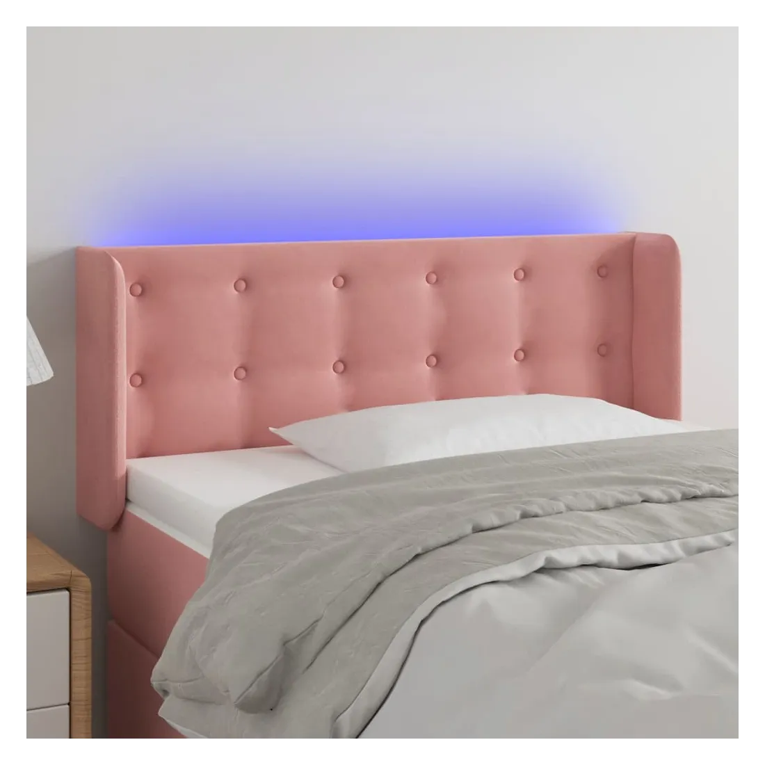 Cette tête de lit à LED classique, au design élégant, donne à votre cadre de lit une touche de modernité étonnante et convient parfaitement à toute chambre à coucher. Velours doux : le velours est un tissu doux et luxueux qui se reconnaît à son tas dense de fibres uniformément coupées qui ont une touche lisse. Le tissu en velours présente un toucher doux distinctif, ce qui le rend confortable au toucher.LED colorée : apportez de l'éclairage dans l'obscurité avec des lumières LED colorées !Hauteur réglable : la tête de lit est réglable en hauteur selon vos préférences.Excellent soutien : la tête de lit vous offre un excellent soutien du dos lorsque vous êtes assis dans votre lit pour lire ou regarder la télévision.Bande à LED découpable : cette bande à LED flexible peut être ajustée en longueur. Le symbole des ciseaux indique où la bande peut être coupée en toute sécurité sans l'endommager. Remarque :Seule la partie avec un symbole de ciseaux peut être coupée et seule la partie avec l'USB continuera à fonctionner comme avant.Chaque produit est livré avec un manuel de montage dans la boîte pour un montage facile.Ce produit est doté d'un connecteur USB, mais la source d'alimentation certifiée de USB 5V n'est pas incluse.