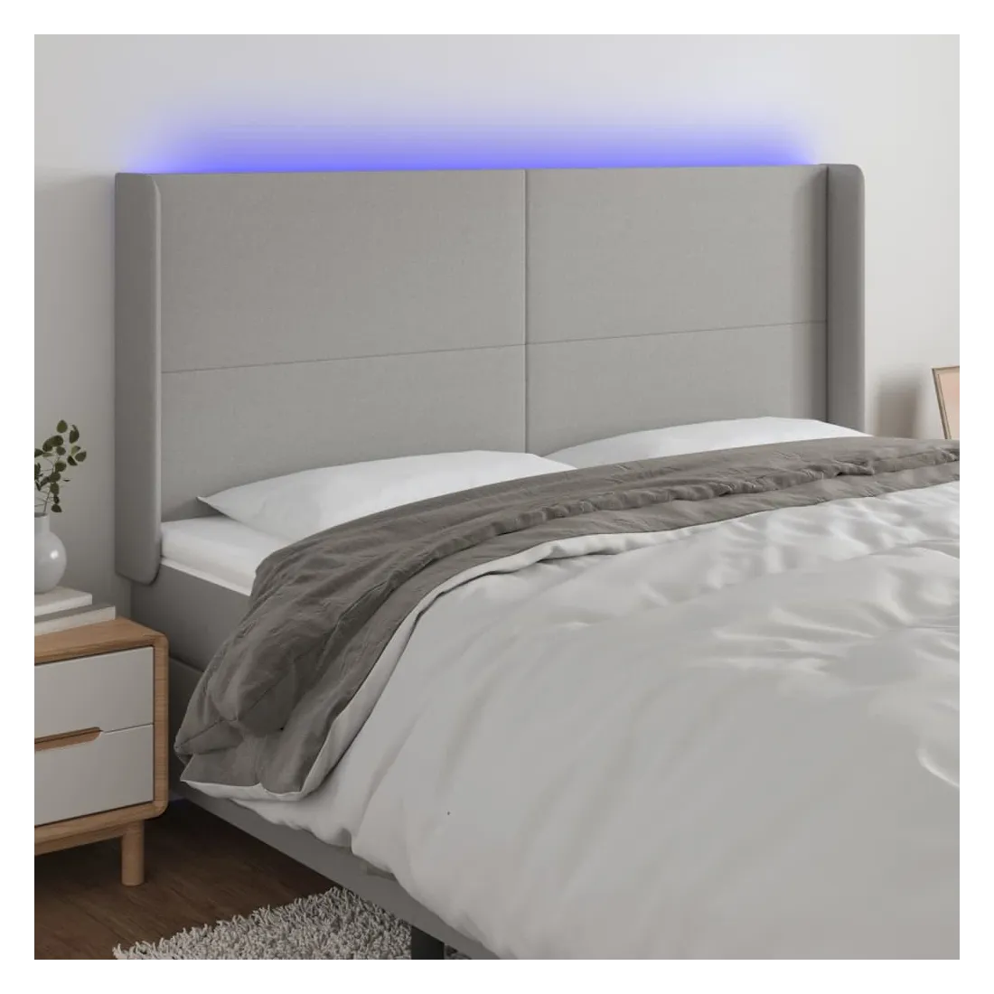Tête de lit à LED Gris clair 163x16x118/128 cm Tissu
