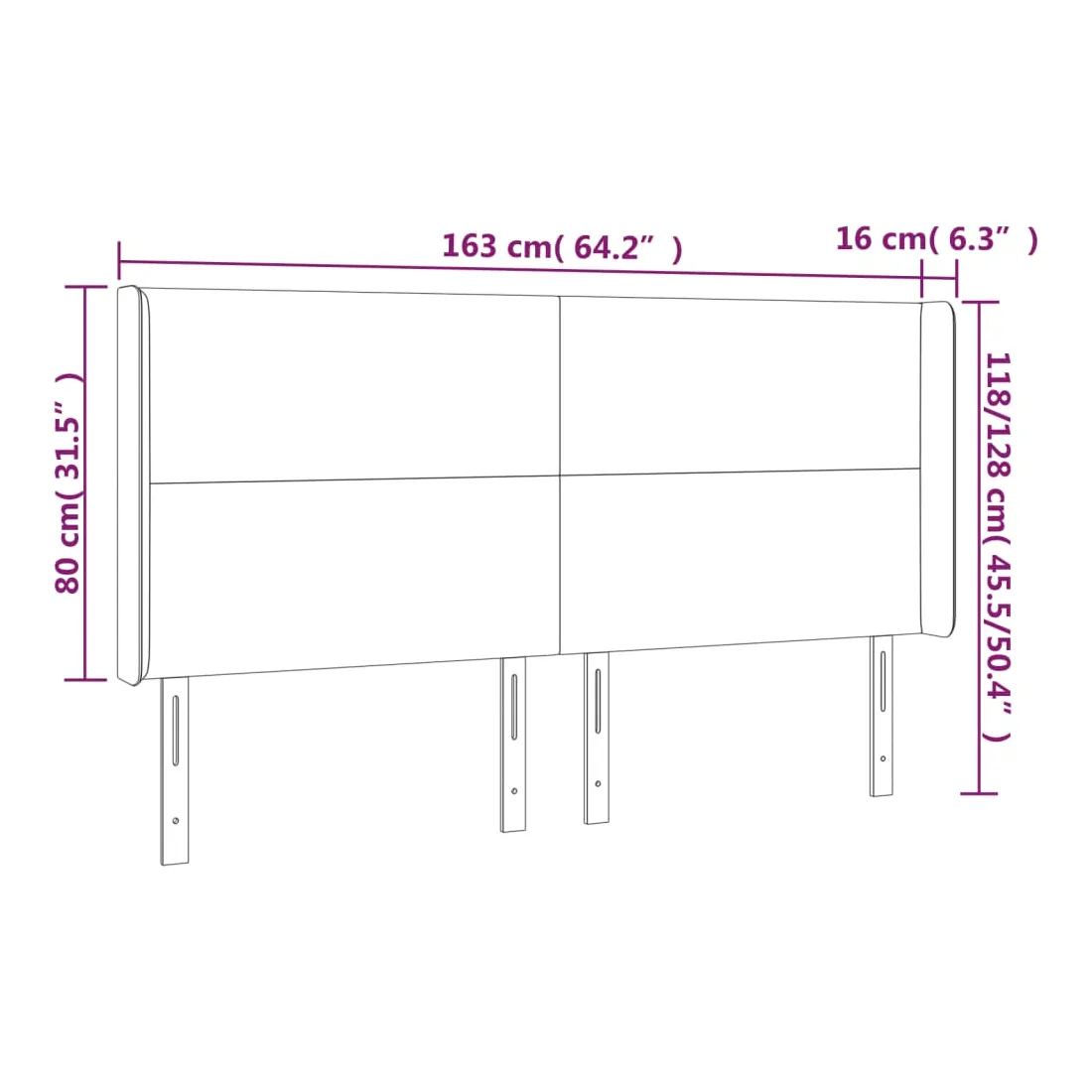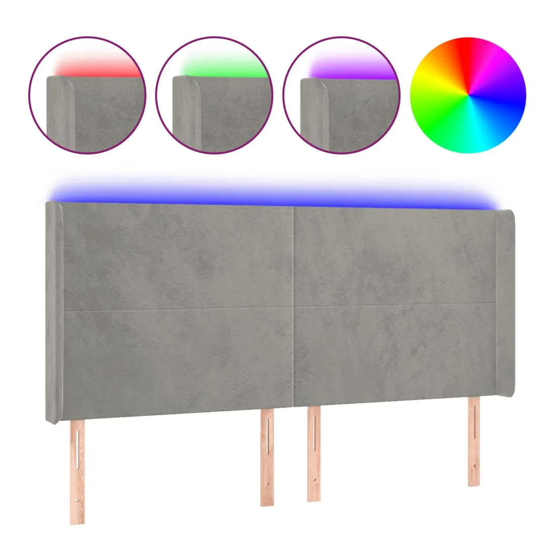 Tête de lit à LED Gris clair 163x16x118/128 cm Velours