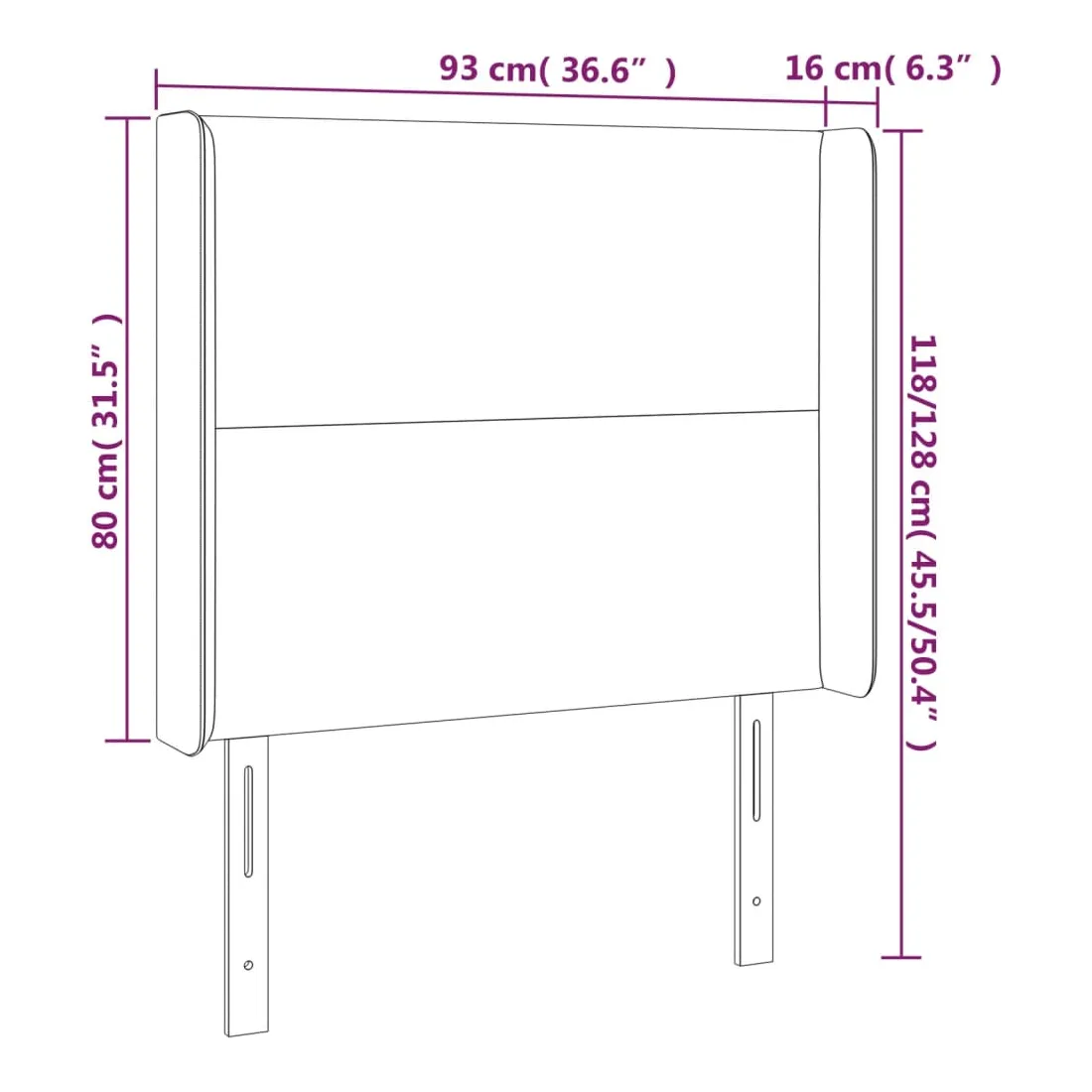 - 93 x 16 x 118/128 cm