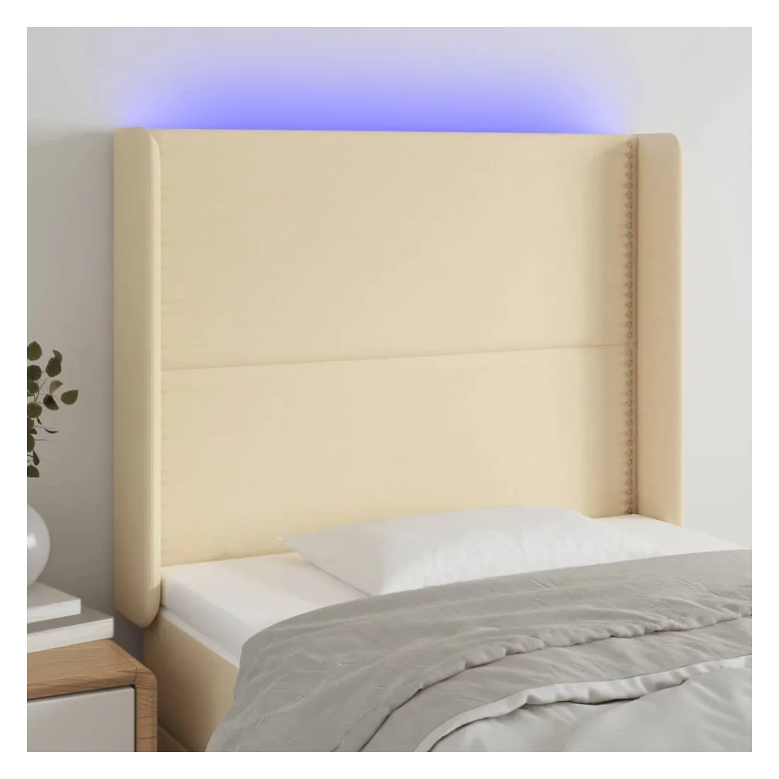 Cette tête de lit à LED classique, au design élégant, donne à votre cadre de lit une touche de modernité étonnante et convient parfaitement à toute chambre à coucher. Tissu durable : le tissu présente un aspect simple et épuré, et il est respirant et durable. LED colorée : apportez de l'éclairage dans l'obscurité avec des lumières LED colorées ! Hauteur réglable : la tête de lit est réglable en hauteur selon vos préférences. Excellent soutien : la tête de lit vous offre un excellent soutien du dos lorsque vous êtes assis dans votre lit pour lire ou regarder la télévision. Bande à LED découpable : cette bande à LED flexible peut être ajustée en longueur. Le symbole des ciseaux indique où la bande peut être coupée en toute sécurité sans l'endommager. Remarque : Seule la partie avec un sy