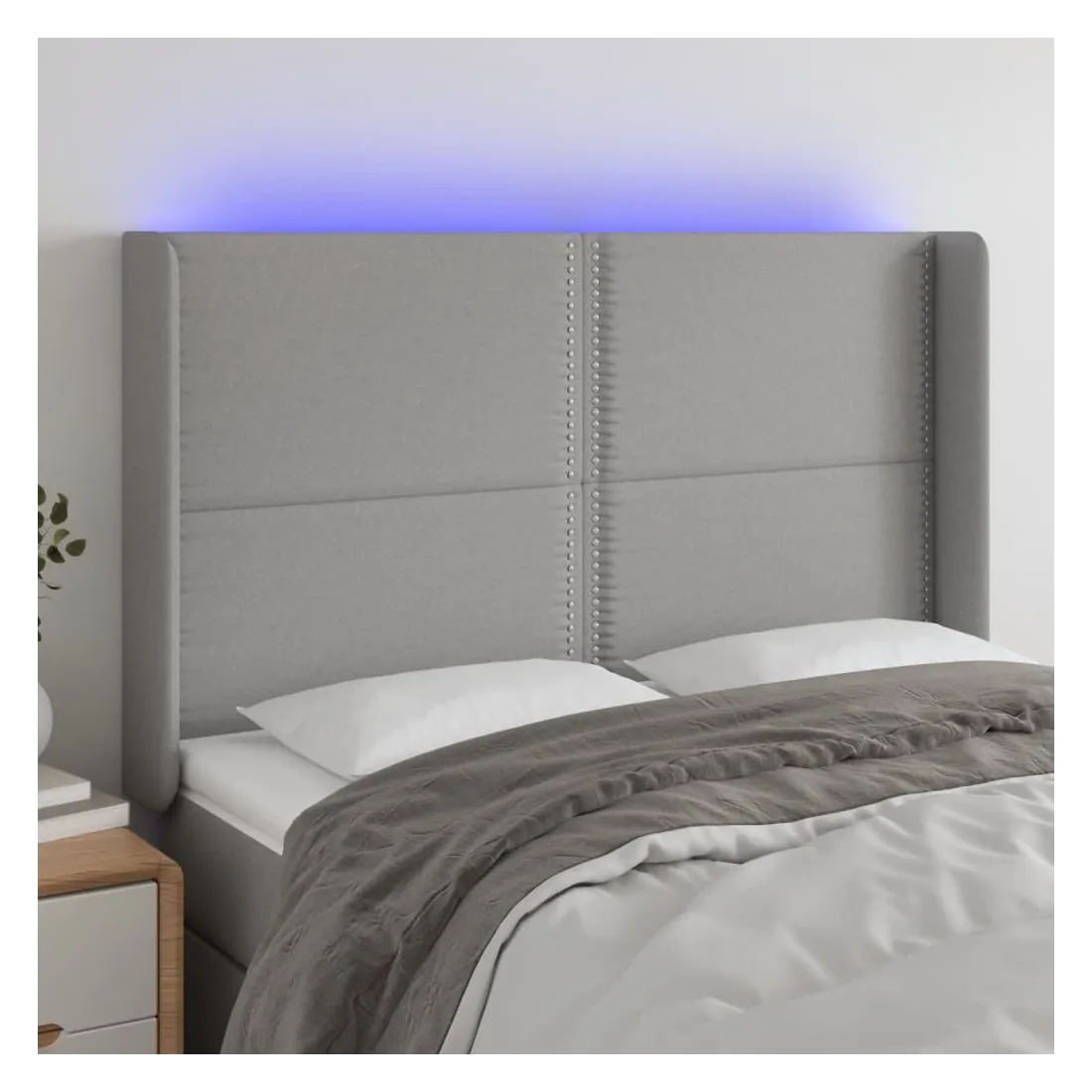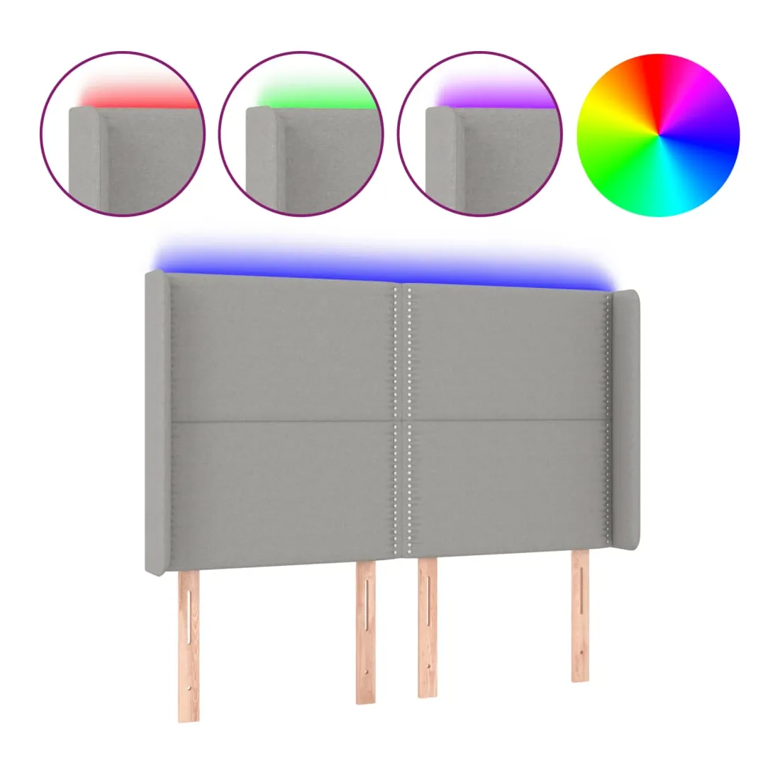 Tête de lit à LED Gris clair 147x16x118/128 cm Tissu