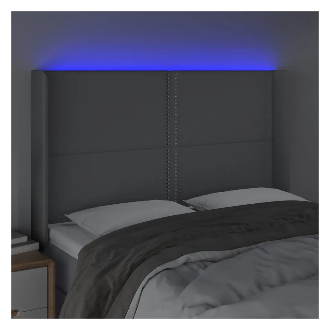 Cette tête de lit à LED classique, au design élégant, donne à votre cadre de lit une touche de modernité étonnante et convient parfaitement à toute chambre à coucher. Tissu durable : le tissu présente un aspect simple et épuré, et il est respirant et durable. LED colorée : apportez de l'éclairage dans l'obscurité avec des lumières LED colorées ! Hauteur réglable : la tête de lit est réglable en hauteur selon vos préférences. Excellent soutien : la tête de lit vous offre un excellent soutien du dos lorsque vous êtes assis dans votre lit pour lire ou regarder la télévision. Bande à LED découpable : cette bande à LED flexible peut être ajustée en longueur. Le symbole des ciseaux indique où la bande peut être coupée en toute sécurité sans l'endommager. Remarque : Seule la partie avec un sy