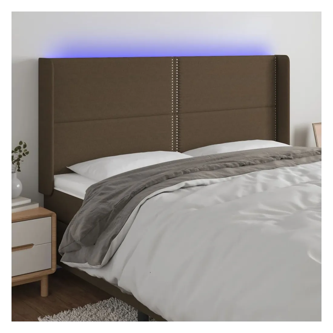 Tête de lit à LED Marron foncé 163x16x118/128 cm Tissu