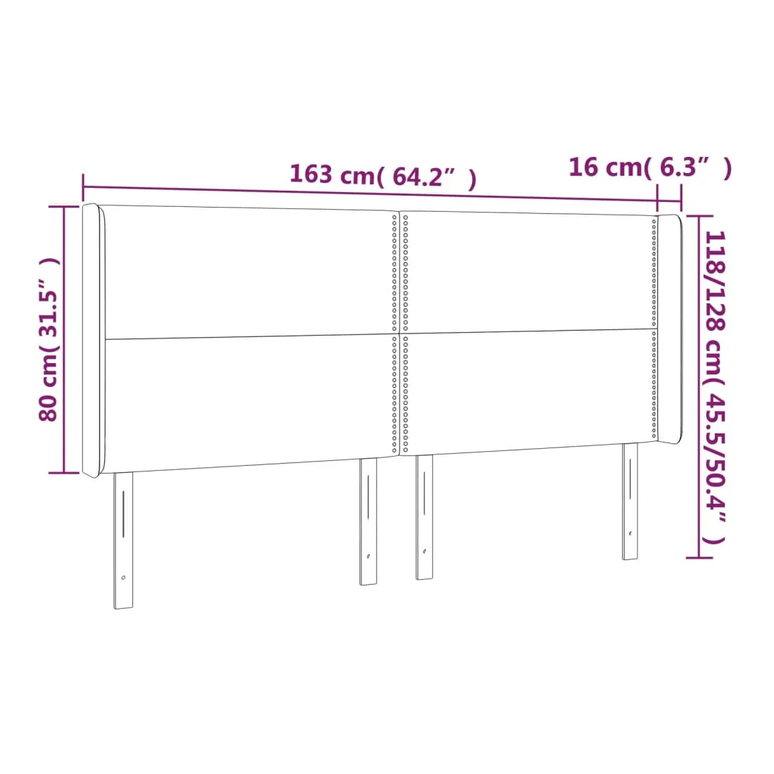 163 x 16 x 118/128 cm