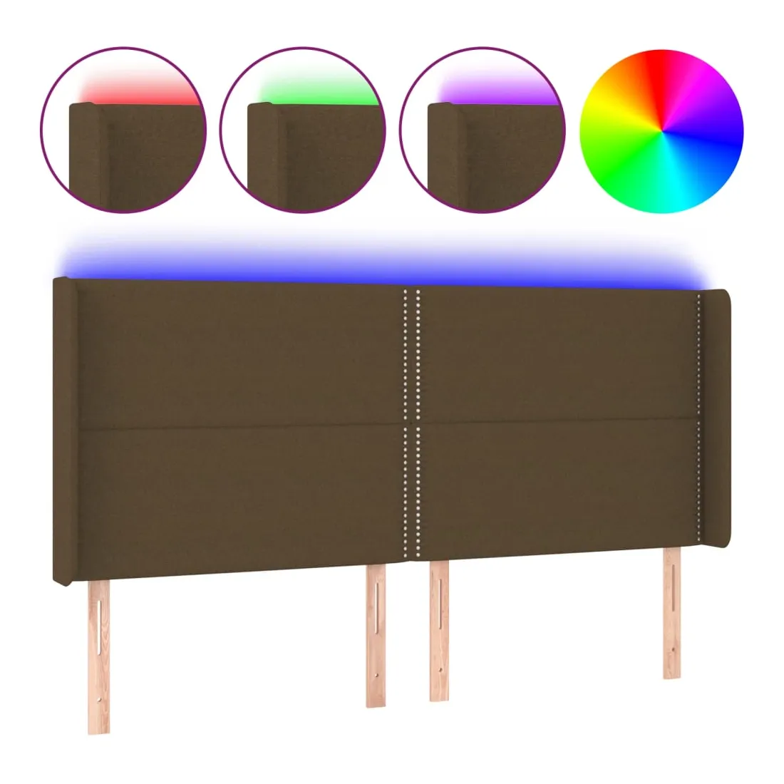 Tête de lit à LED Marron foncé 183x16x118/128 cm Tissu