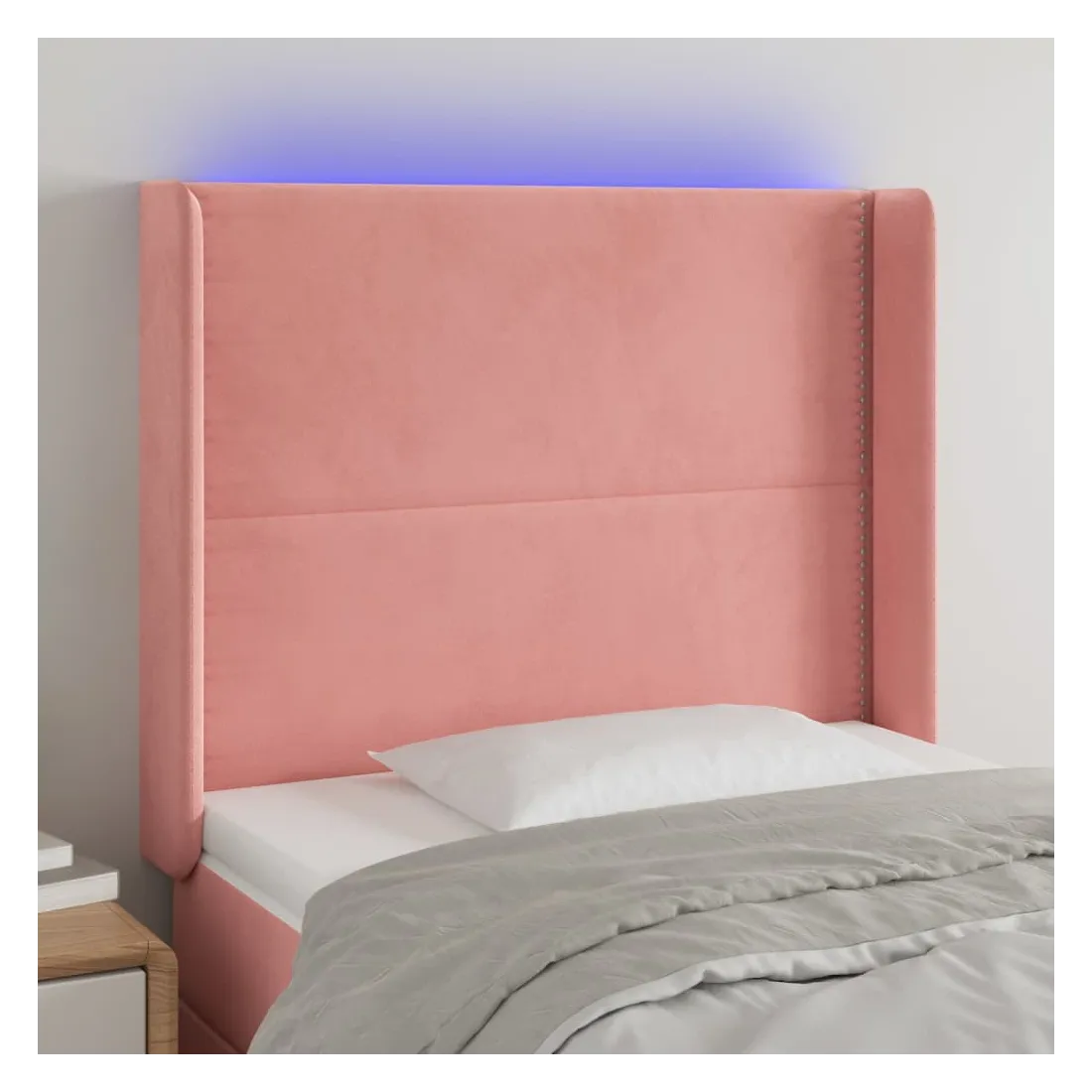 Cette tête de lit à LED classique, au design élégant, donne à votre cadre de lit une touche de modernité étonnante et convient parfaitement à toute chambre à coucher. Velours doux : le velours est un tissu doux et luxueux qui se reconnaît à son tas dense de fibres uniformément coupées qui ont une touche lisse. Le tissu en velours présente un toucher doux distinctif, ce qui le rend confortable au toucher.LED colorée : apportez de l'éclairage dans l'obscurité avec des lumières LED colorées !Hauteur réglable : la tête de lit est réglable en hauteur selon vos préférences.Excellent soutien : la tête de lit vous offre un excellent soutien du dos lorsque vous êtes assis dans votre lit pour lire ou regarder la télévision.Bande à LED découpable : cette bande à LED flexible peut être ajustée en longueur. Le symbole des ciseaux indique où la bande peut être coupée en toute sécurité sans l'endommager. Remarque :Seule la partie avec un symbole de ciseaux peut être coupée et seule la partie avec l'USB continuera à fonctionner comme avant.Chaque produit est livré avec un manuel de montage dans la boîte pour un montage facile.Ce produit est doté d'un connecteur USB, mais la source d'alimentation certifiée de USB 5V n'est pas incluse.