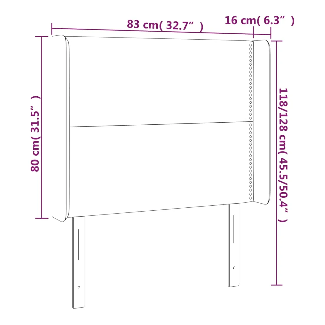 - 83 x 16 x 118/128 cm