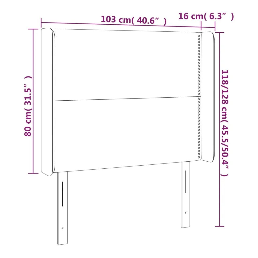 103 x 16 x 118/128 cm