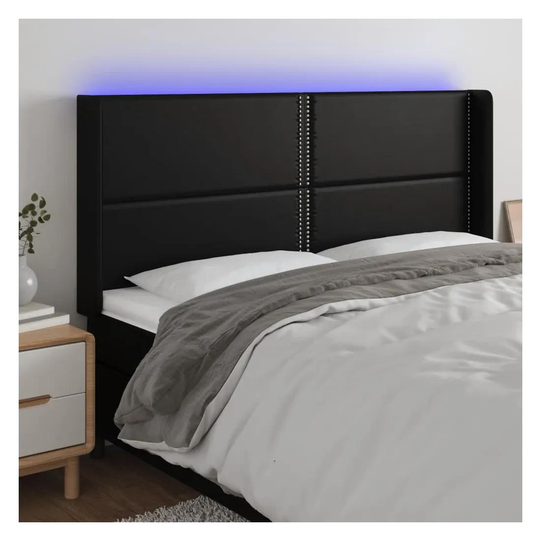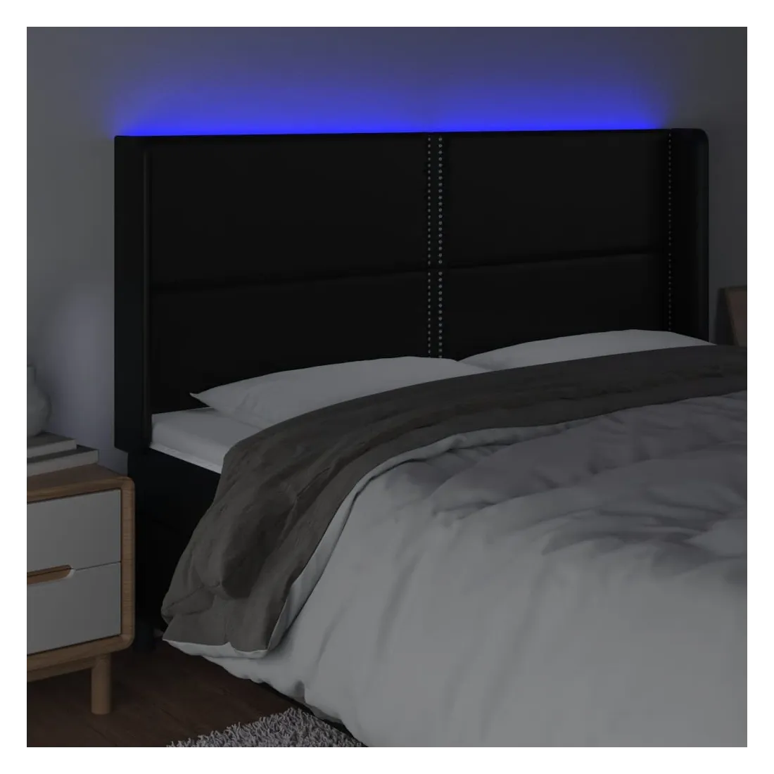 vidaXLCette tête de lit à LED classique, au design élégant, donne à votre cadre de lit une touche de modernité étonnante et convient parfaitement à toute chambre à coucher. Similicuir durable : le similicuir de qualité supérieure est un matériau très durable. Il est résistant aux taches, ce qui le rend facile à nettoyer avec un chiffon humide. La surface lisse donne également un aspect luxueux et la beauté du cuir véritable.LED colorée : apportez de l'éclairage dans l'obscurité avec des lumières LED colorées !Hauteur réglable : la tête de lit est réglable en hauteur selon vos préférences.Excellent soutien : la tête de lit vous offre un excellent soutien du dos lorsque vous êtes assis dans votre lit pour lire ou regarder la télévision.Bande à LED découpable : cette bande à LED flexible peut être ajustée en longueur. Le symbole des ciseaux indique où la bande peut être coupée en toute sécurité sans l'endommager. Remarque :Seule la partie avec un symbole de ciseaux peut être coupée et seule la partie avec l'USB continuera à fonctionner comme avant.Chaque produit est livré avec un manuel de montage dans la boîte pour un montage facile.Ce produit est doté d'un connecteur USB, mais la source d'alimentation certifiée de USB 5V n'est pas incluse.