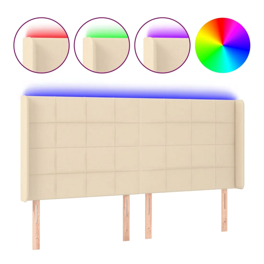 Cette tête de lit à LED classique, au design élégant, donne à votre cadre de lit une touche de modernité étonnante et convient parfaitement à toute chambre à coucher. Tissu durable : le tissu présente un aspect simple et épuré, et il est respirant et durable. LED colorée : apportez de l'éclairage dans l'obscurité avec des lumières LED colorées ! Hauteur réglable : la tête de lit est réglable en hauteur selon vos préférences. Excellent soutien : la tête de lit vous offre un excellent soutien du dos lorsque vous êtes assis dans votre lit pour lire ou regarder la télévision. Bande à LED découpable : cette bande à LED flexible peut être ajustée en longueur. Le symbole des ciseaux indique où la bande peut être coupée en toute sécurité sans l'endommager. Remarque : Seule la partie avec un sy