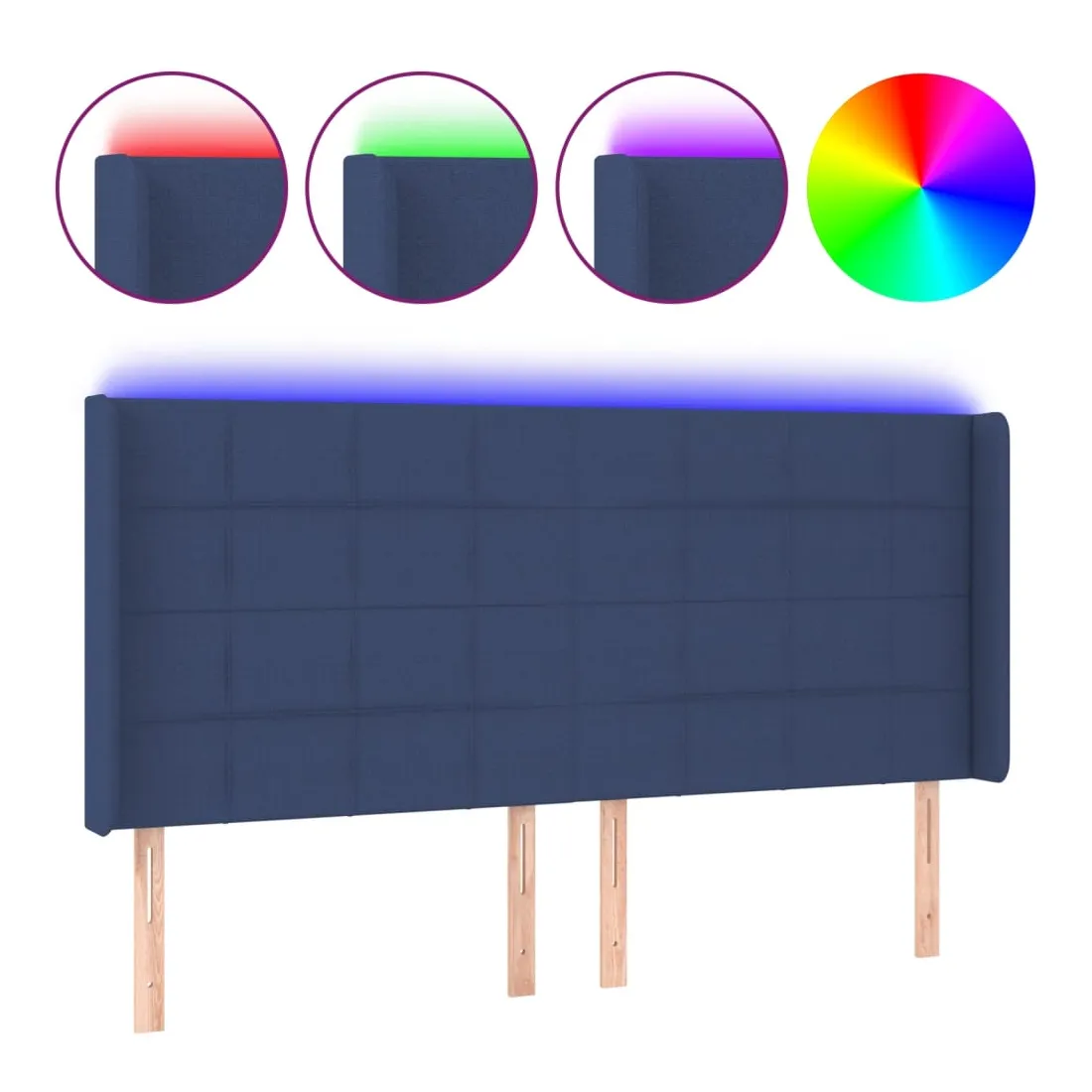 Tête de lit à LED Bleu 203x16x118/128 cm Tissu