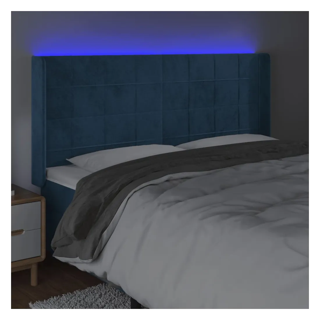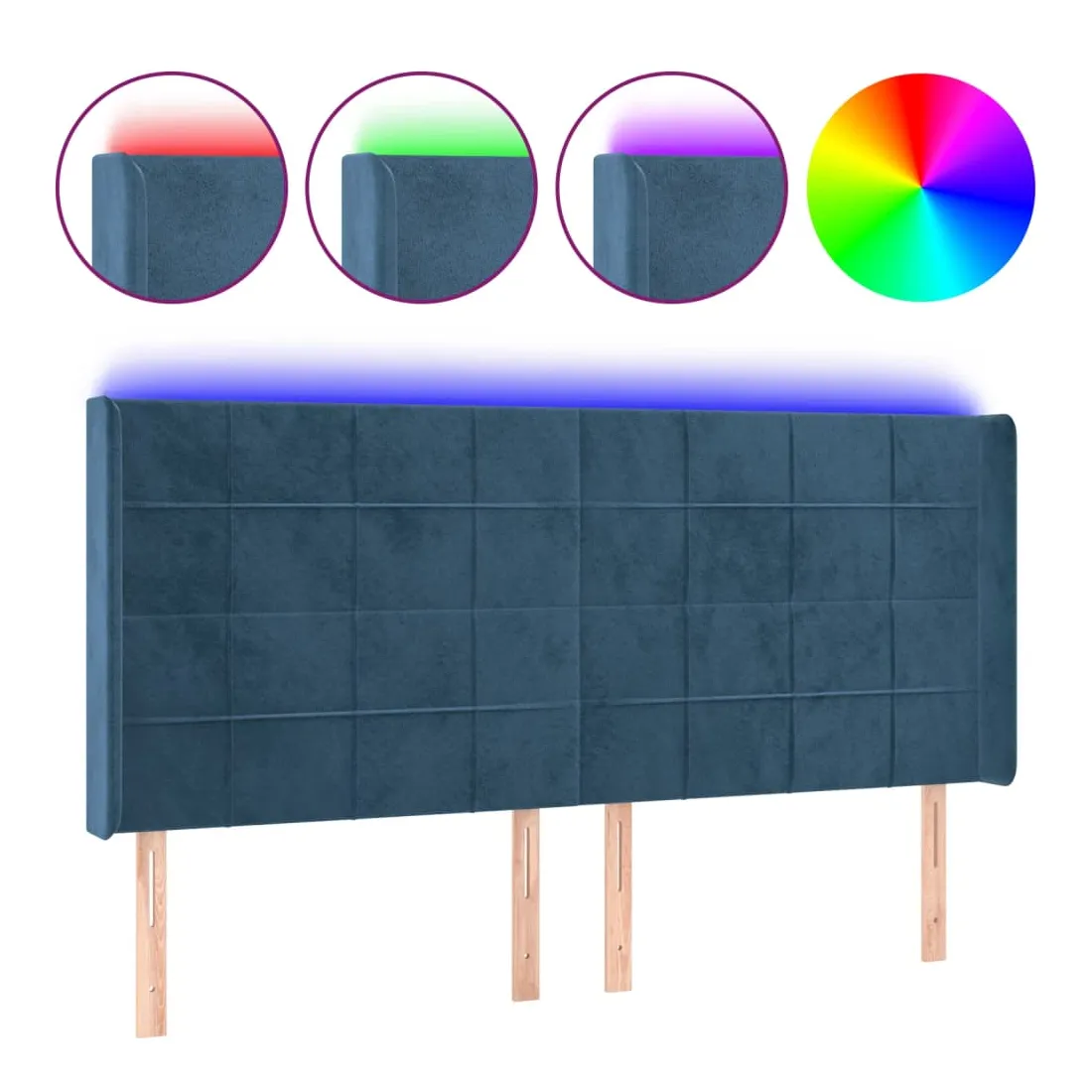 Tête de lit à LED Bleu foncé 203x16x118/128 cm Velours