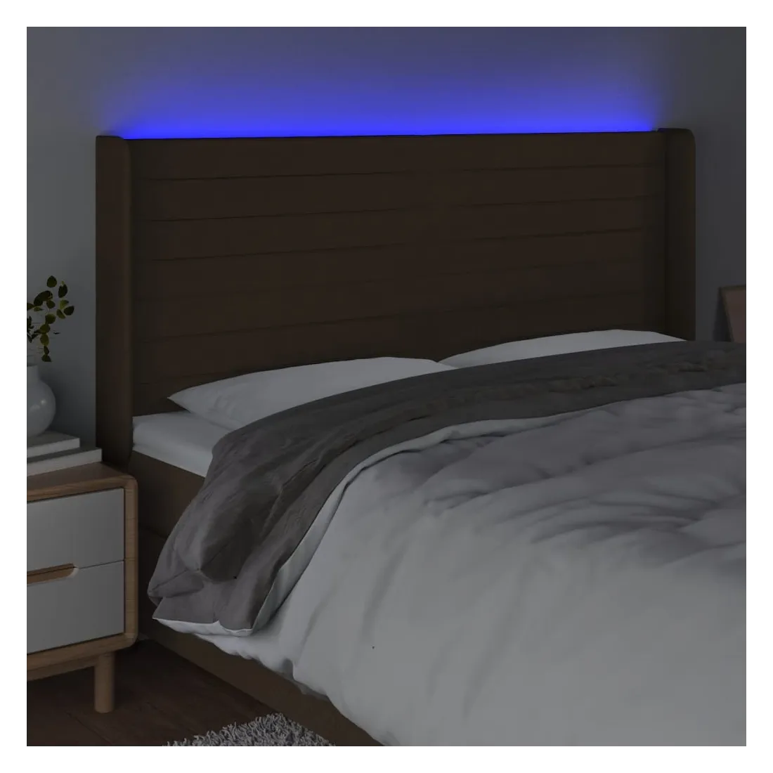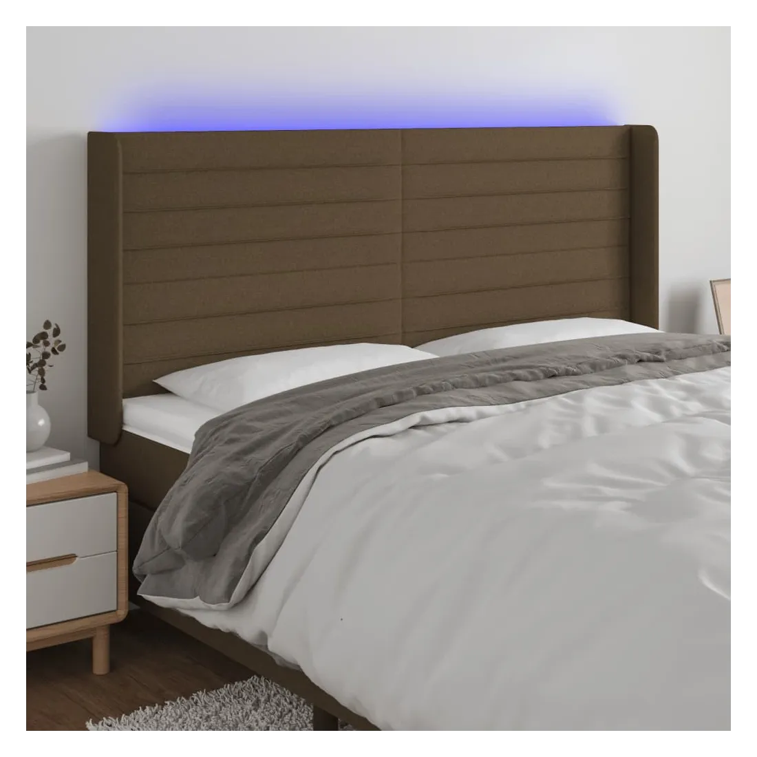 Tête de lit à LED Marron foncé 183x16x118/128 cm Tissu