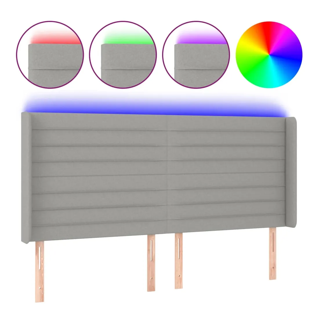 Cette tête de lit à LED classique, au design élégant, donne à votre cadre de lit une touche de modernité étonnante et convient parfaitement à toute chambre à coucher. Tissu durable : le tissu présente un aspect simple et épuré, et il est respirant et durable. LED colorée : apportez de l'éclairage dans l'obscurité avec des lumières LED colorées ! Hauteur réglable : la tête de lit est réglable en hauteur selon vos préférences. Excellent soutien : la tête de lit vous offre un excellent soutien du dos lorsque vous êtes assis dans votre lit pour lire ou regarder la télévision. Bande à LED découpable : cette bande à LED flexible peut être ajustée en longueur. Le symbole des ciseaux indique où la bande peut être coupée en toute sécurité sans l'endommager. Remarque : Seule la partie avec un sy