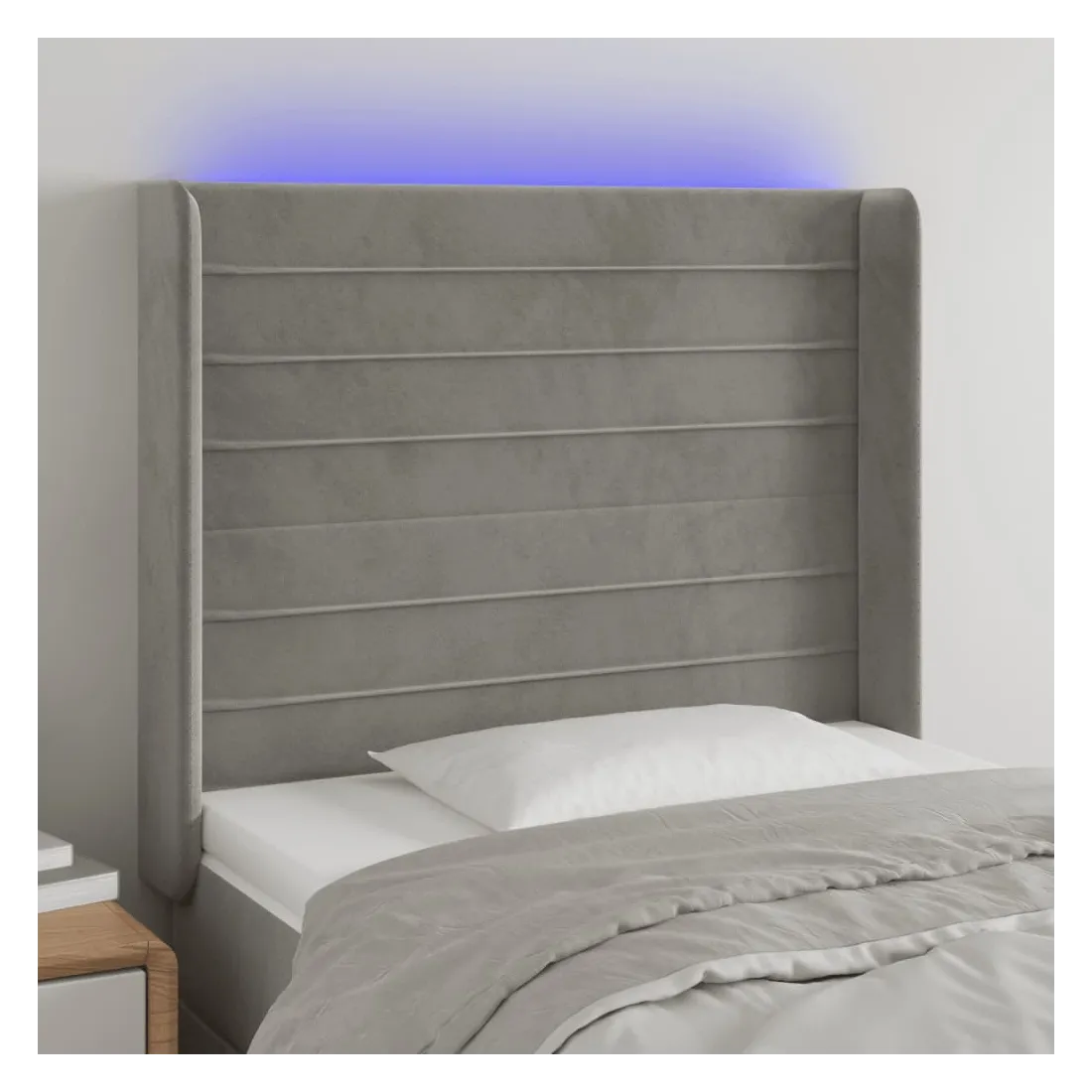 Tête de lit à LED Gris clair 93x16x118/128 cm Velours