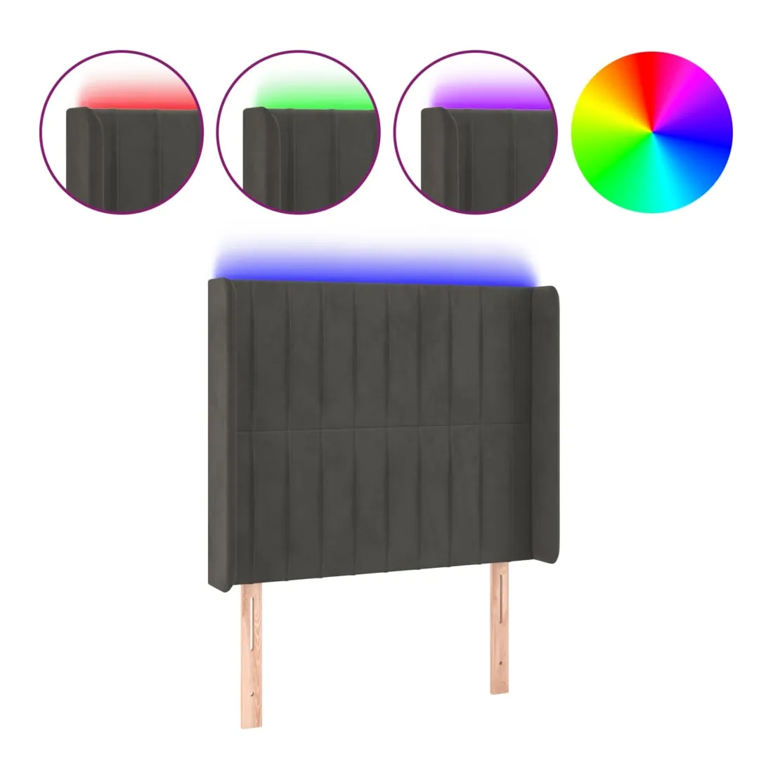 Tête de lit à LED Gris foncé 93x16x118/128 cm Velours