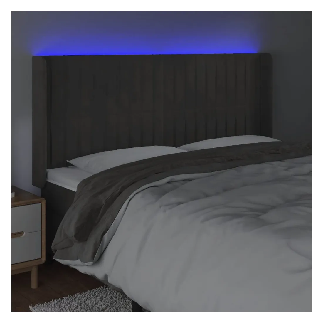 Cette tête de lit à LED classique, au design élégant, donne à votre cadre de lit une touche de modernité étonnante et convient parfaitement à toute chambre à coucher. Velours doux : le velours est un tissu doux et luxueux qui se reconnaît à son tas dense de fibres uniformément coupées qui ont une touche lisse. Le tissu en velours présente un toucher doux distinctif, ce qui le rend confortable au toucher.LED colorée : apportez de l'éclairage dans l'obscurité avec des lumières LED colorées !Hauteur réglable : la tête de lit est réglable en hauteur selon vos préférences.Excellent soutien : la tête de lit vous offre un excellent soutien du dos lorsque vous êtes assis dans votre lit pour lire ou regarder la télévision.Bande à LED découpable : cette bande à LED flexible peut être ajustée en longueur. Le symbole des ciseaux indique où la bande peut être coupée en toute sécurité sans l'endommager. Remarque :Seule la partie avec un symbole de ciseaux peut être coupée et seule la partie avec l'USB continuera à fonctionner comme avant.Chaque produit est livré avec un manuel de montage dans la boîte pour un montage facile.Ce produit est doté d'un connecteur USB, mais la source d'alimentation certifiée de USB 5V n'est pas incluse.