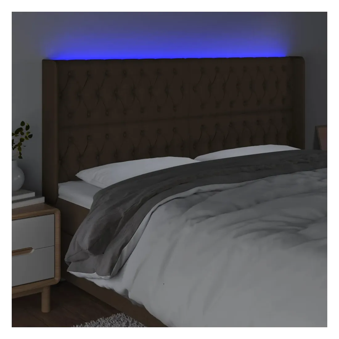Cette tête de lit à LED classique, au design élégant, donne à votre cadre de lit une touche de modernité étonnante et convient parfaitement à toute chambre à coucher. Tissu durable : le tissu présente un aspect simple et épuré, et il est respirant et durable.LED colorée : apportez de l'éclairage dans l'obscurité avec des lumières LED colorées !Hauteur réglable : la tête de lit est réglable en hauteur selon vos préférences.Excellent soutien : la tête de lit vous offre un excellent soutien du dos lorsque vous êtes assis dans votre lit pour lire ou regarder la télévision.Bande à LED découpable : cette bande à LED flexible peut être ajustée en longueur. Le symbole des ciseaux indique où la bande peut être coupée en toute sécurité sans l'endommager. Remarque :Seule la partie avec un symbole de ciseaux peut être coupée et seule la partie avec l'USB continuera à fonctionner comme avant.Chaque produit est livré avec un manuel de montage dans la boîte pour un montage facile.Ce produit est doté d'un connecteur USB, mais la source d'alimentation certifiée de USB 5V n'est pas incluse.
