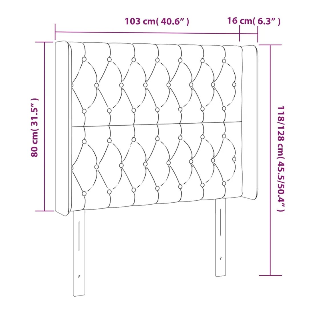 103 x 16 x 118/128 cm