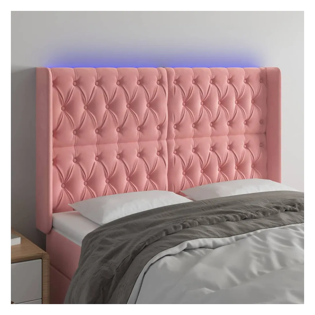 Cette tête de lit à LED classique, au design élégant, donne à votre cadre de lit une touche de modernité étonnante et convient parfaitement à toute chambre à coucher. Velours doux : le velours est un tissu doux et luxueux qui se reconnaît à son tas dense de fibres uniformément coupées qui ont une touche lisse. Le tissu en velours présente un toucher doux distinctif, ce qui le rend confortable au toucher.LED colorée : apportez de l'éclairage dans l'obscurité avec des lumières LED colorées !Hauteur réglable : la tête de lit est réglable en hauteur selon vos préférences.Excellent soutien : la tête de lit vous offre un excellent soutien du dos lorsque vous êtes assis dans votre lit pour lire ou regarder la télévision.Bande à LED découpable : cette bande à LED flexible peut être ajustée en longueur. Le symbole des ciseaux indique où la bande peut être coupée en toute sécurité sans l'endommager. Remarque :Seule la partie avec un symbole de ciseaux peut être coupée et seule la partie avec l'USB continuera à fonctionner comme avant.Chaque produit est livré avec un manuel de montage dans la boîte pour un montage facile.Ce produit est doté d'un connecteur USB, mais la source d'alimentation certifiée de USB 5V n'est pas incluse.