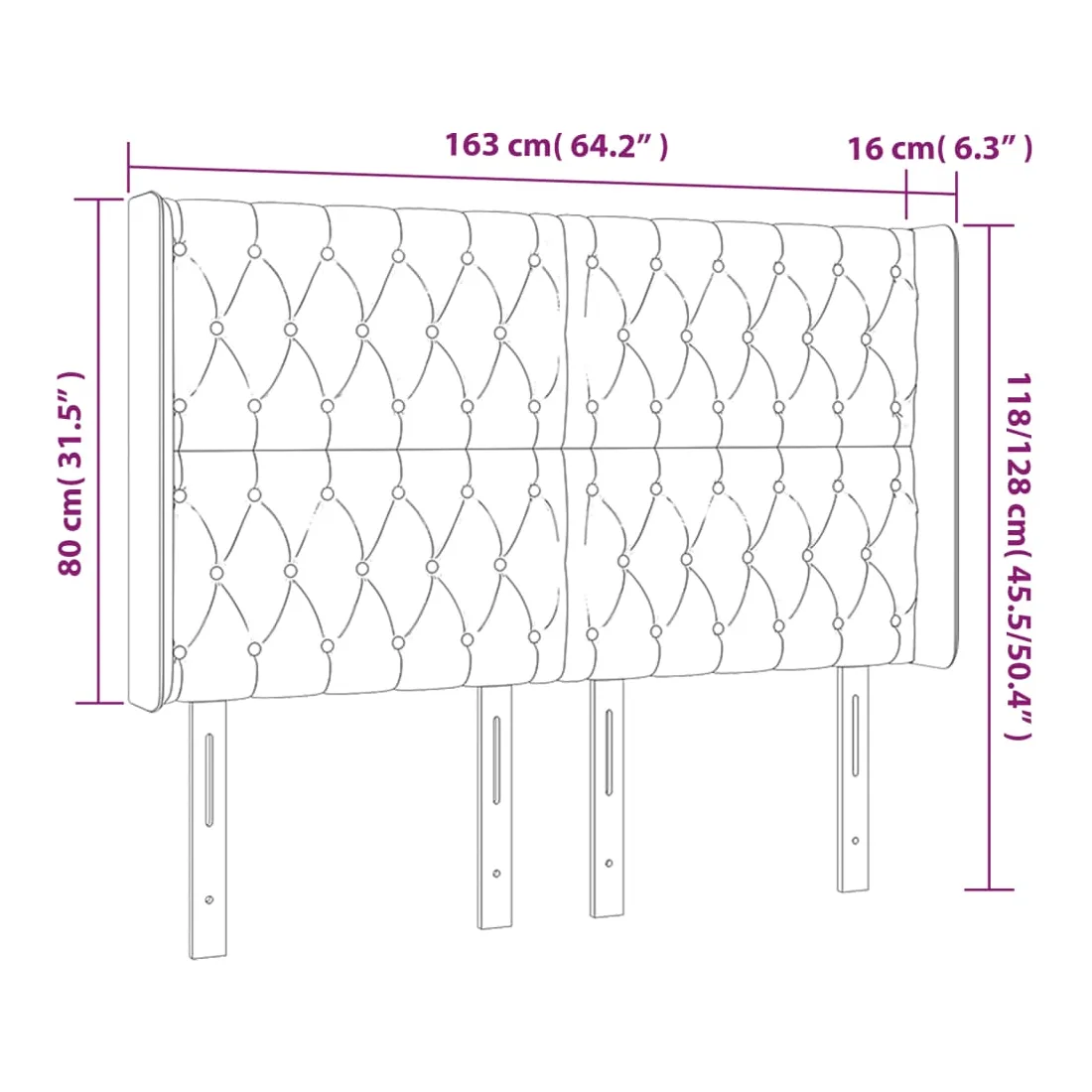 • Dimensions : 163 x 16 x 118/128 cm (l x P x H)