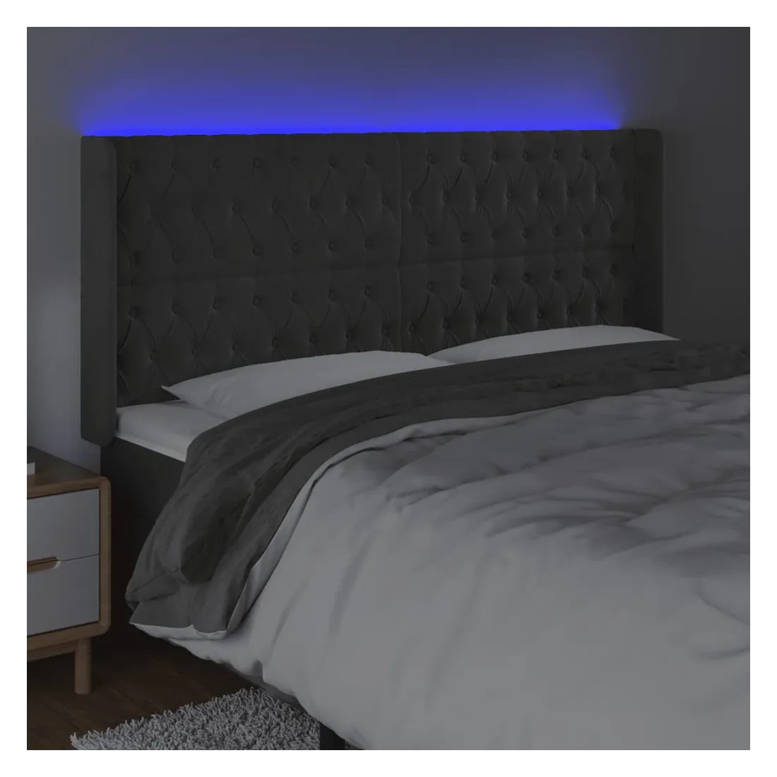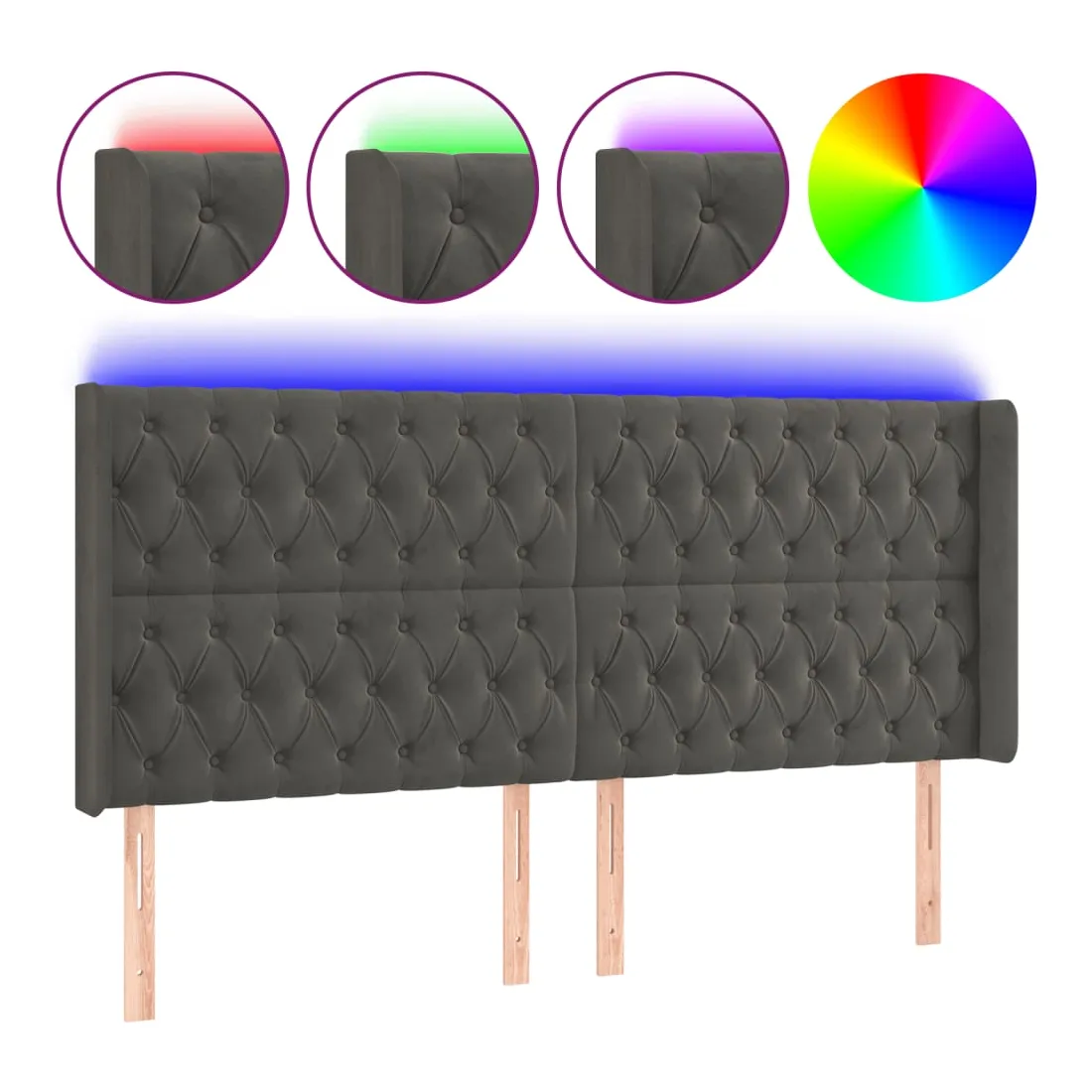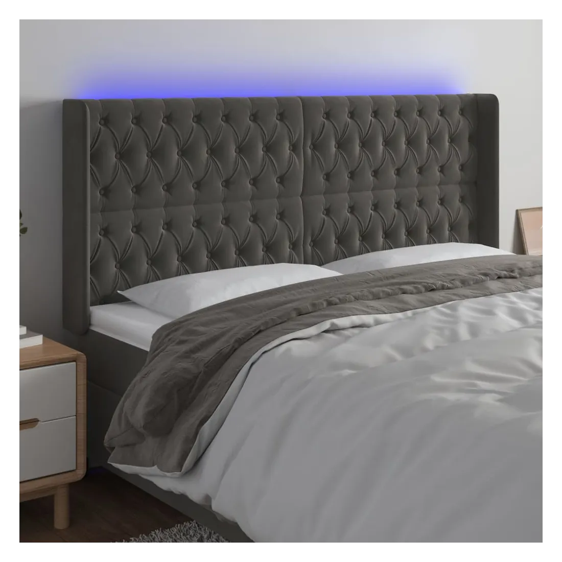 Tête de lit à LED Gris foncé 203x16x118/128 cm Velours